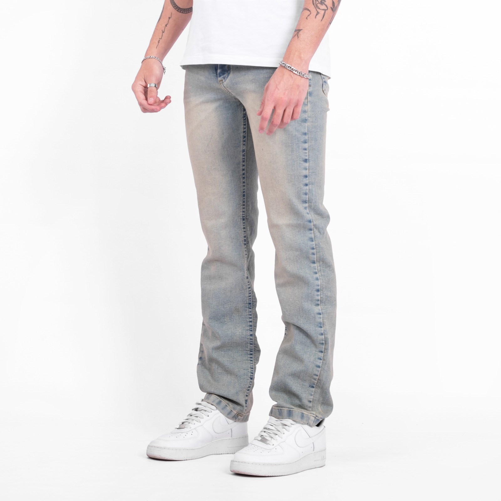 BROOKLYN JEAN SEMI CHUPÍN SEMIELASTIZADO AZUL GASTADO C/BIGOTES CRUZO 40-50