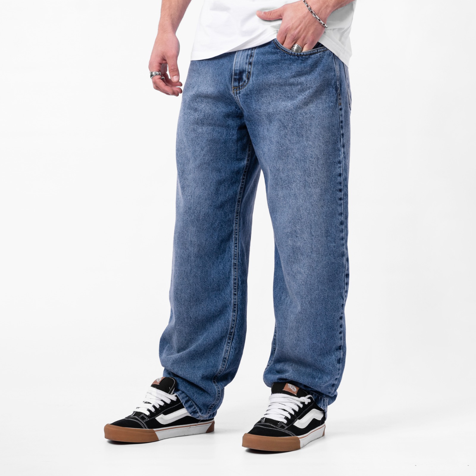 RAPTOR | PANTALON BAGGY CELESTE DENIM LISO RIGIDO TALLES 38 AL 48 VOLSANO