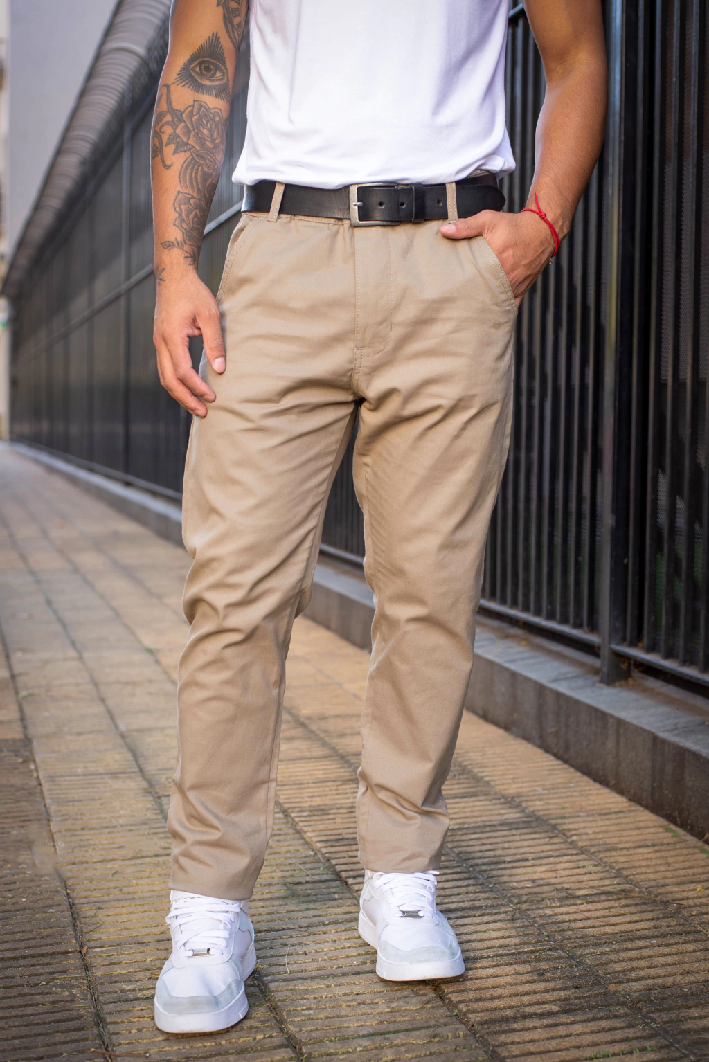 PANTALON DE GABARDINA BEIGE OSCURO CORTE CHINO TALLES 38-48 CRUZO