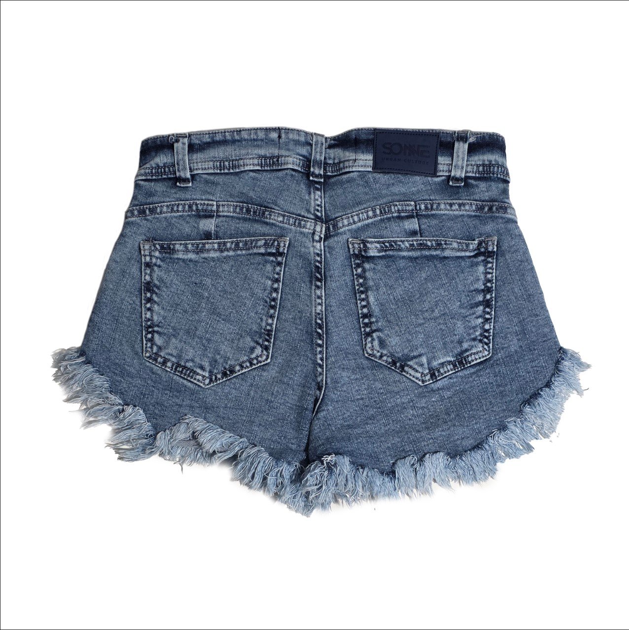 LEXI | SHORT AZUL GASTADO CON DESFLECADO EN BOTAMANGA TIRO ALTO TALLES 36 AL 60 SONNE