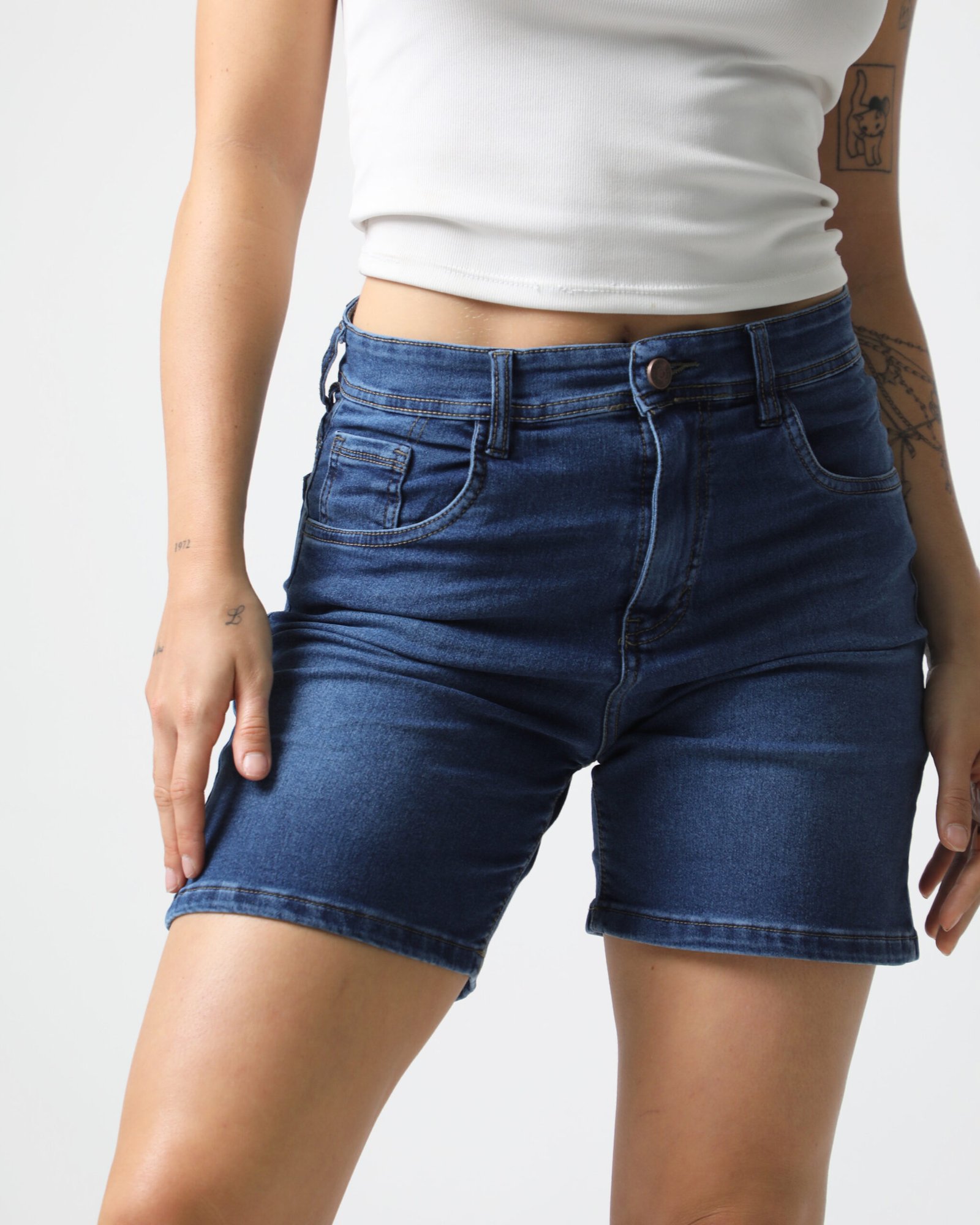 Edam | SHORT AZUL ELASTIZADO TIRO ALTO CON DOBLADO Y BIGOTES TALLES 36 AL 60 SONNE