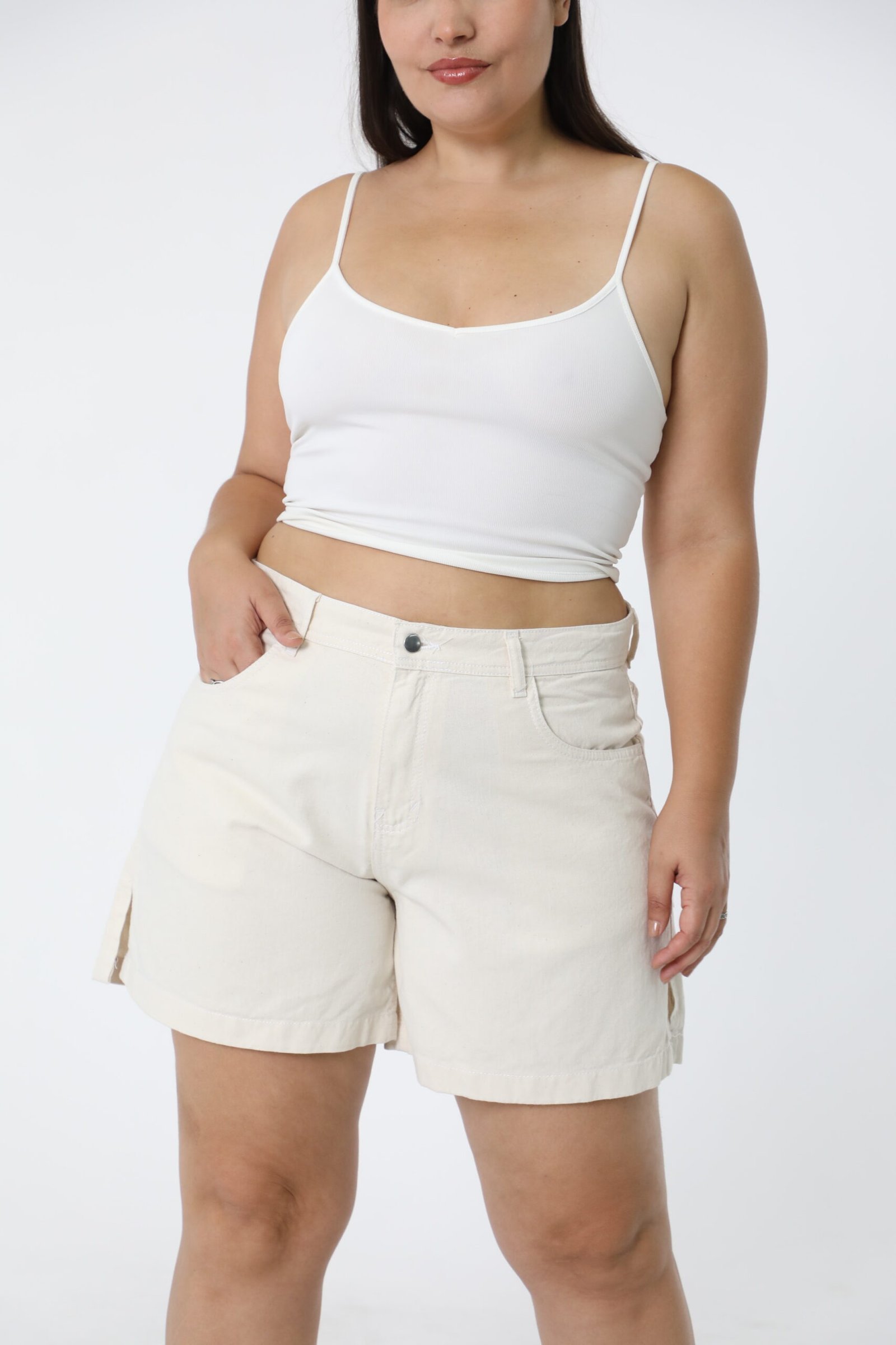 CASSIA I SHORT DE JEAN NATURAL CON ABERTURAS LATERALES TIRO ALTO TALLES 36 AL 42 SONNE