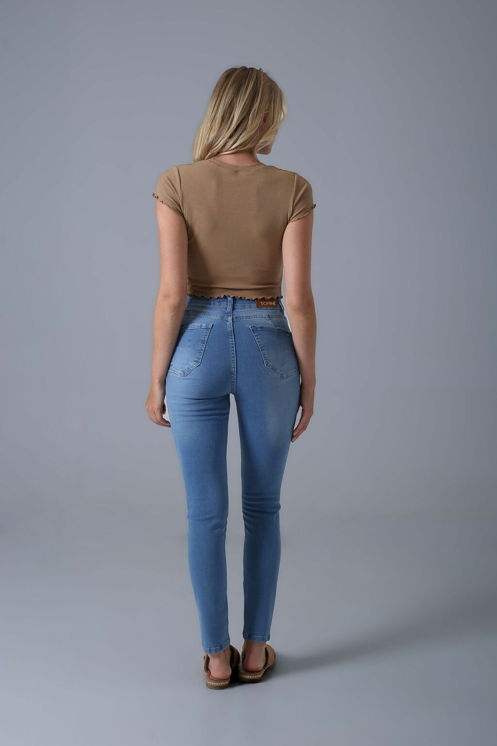 CORAL | SKINNY AZUL CON STRASS TIRO ALTO TALLES 38 AL 54 TORINE
