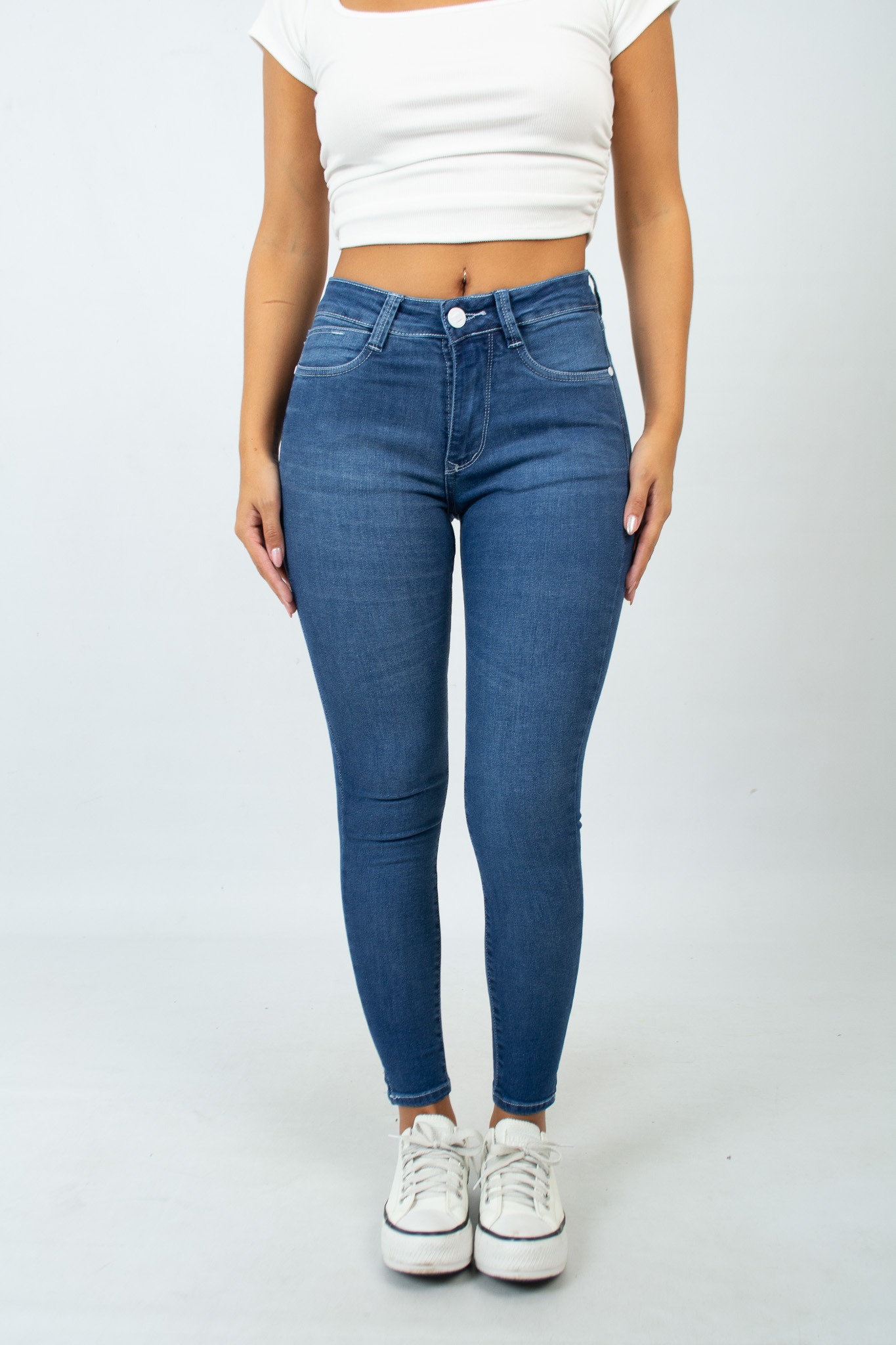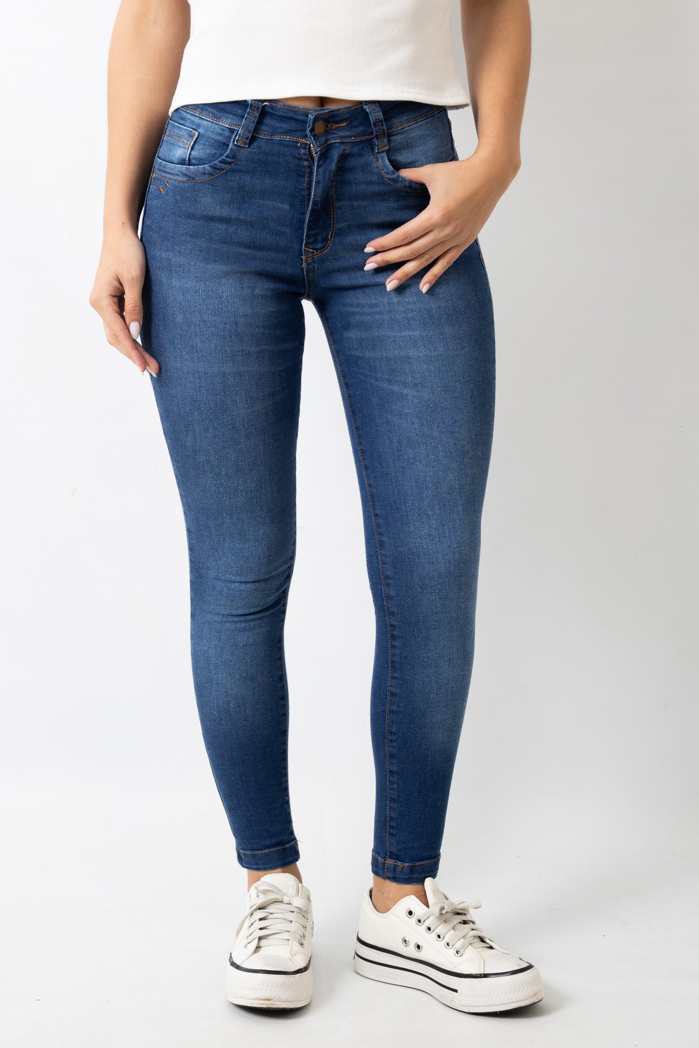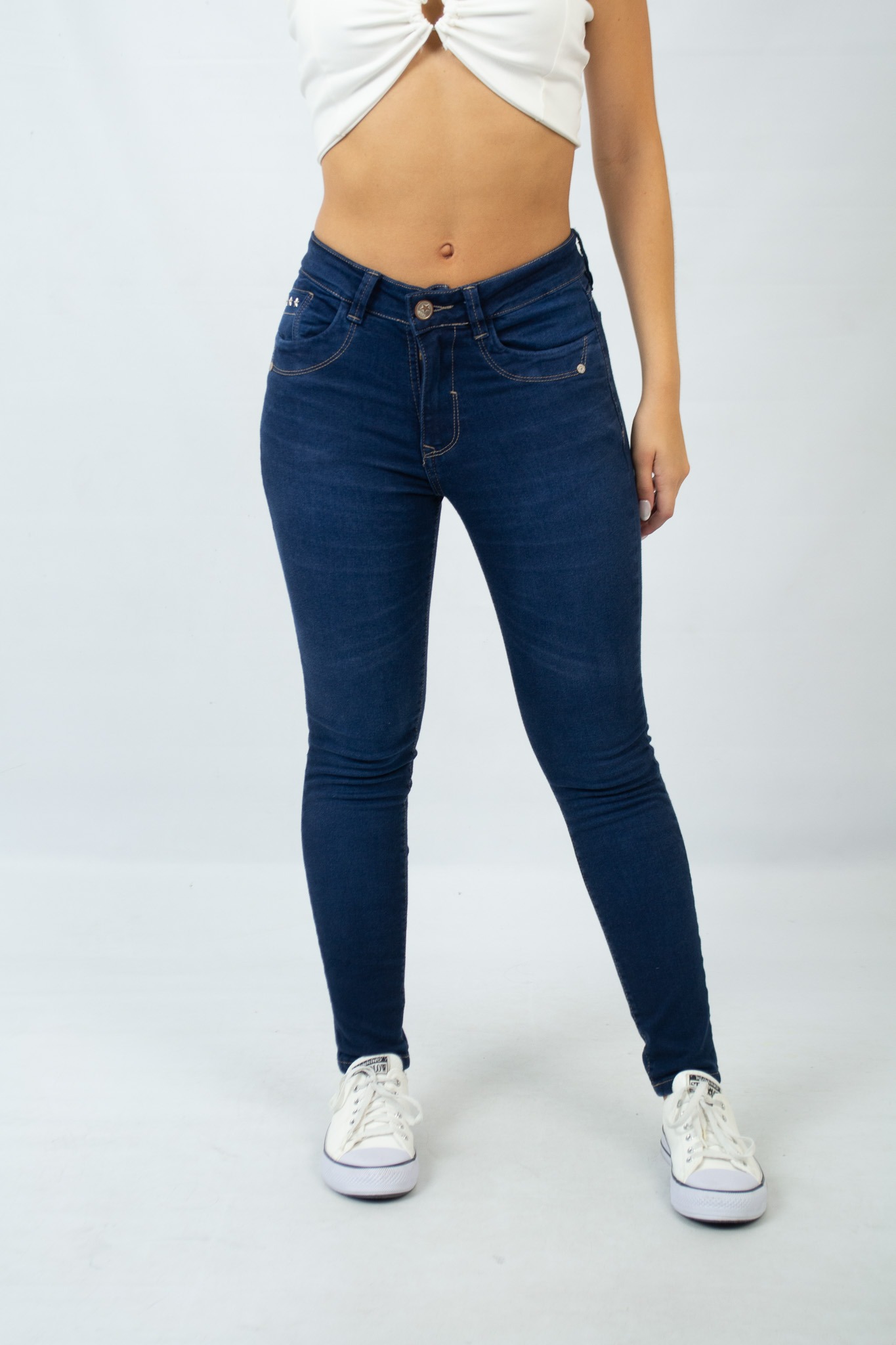 Art. 737 | Jean Chupin Azul Ajustado Clasico Con Localizado Elastizado Tiro Bajo Talles 36-44 Versus