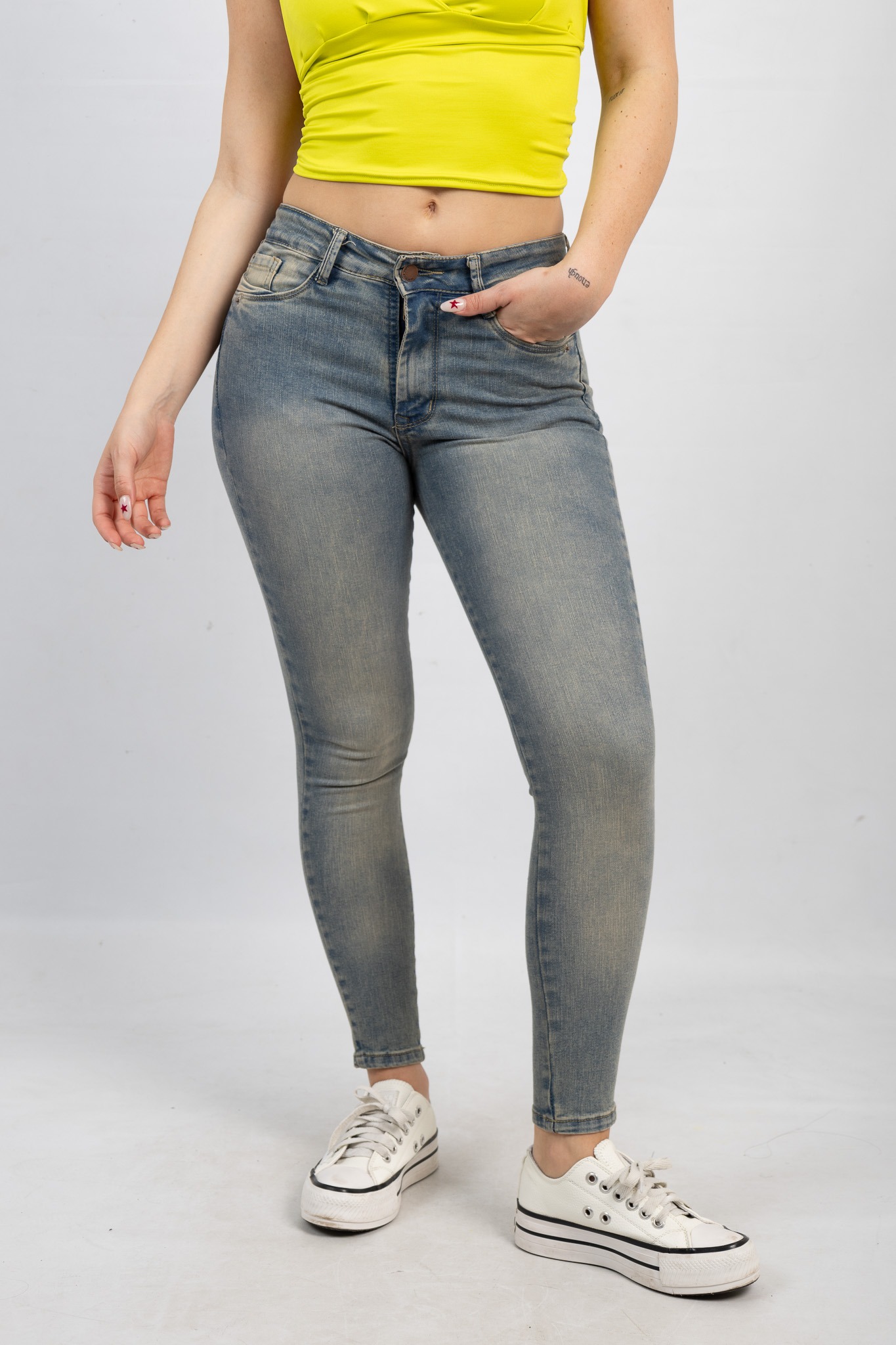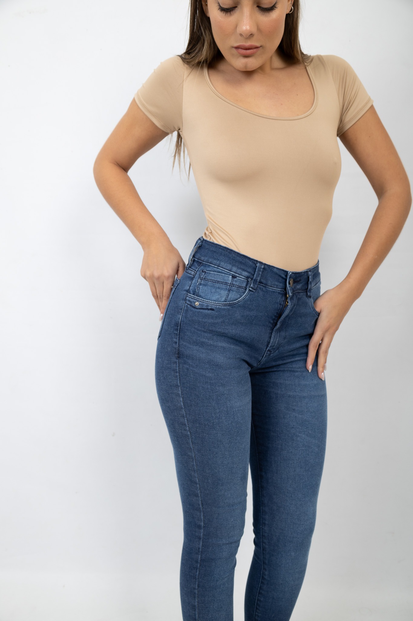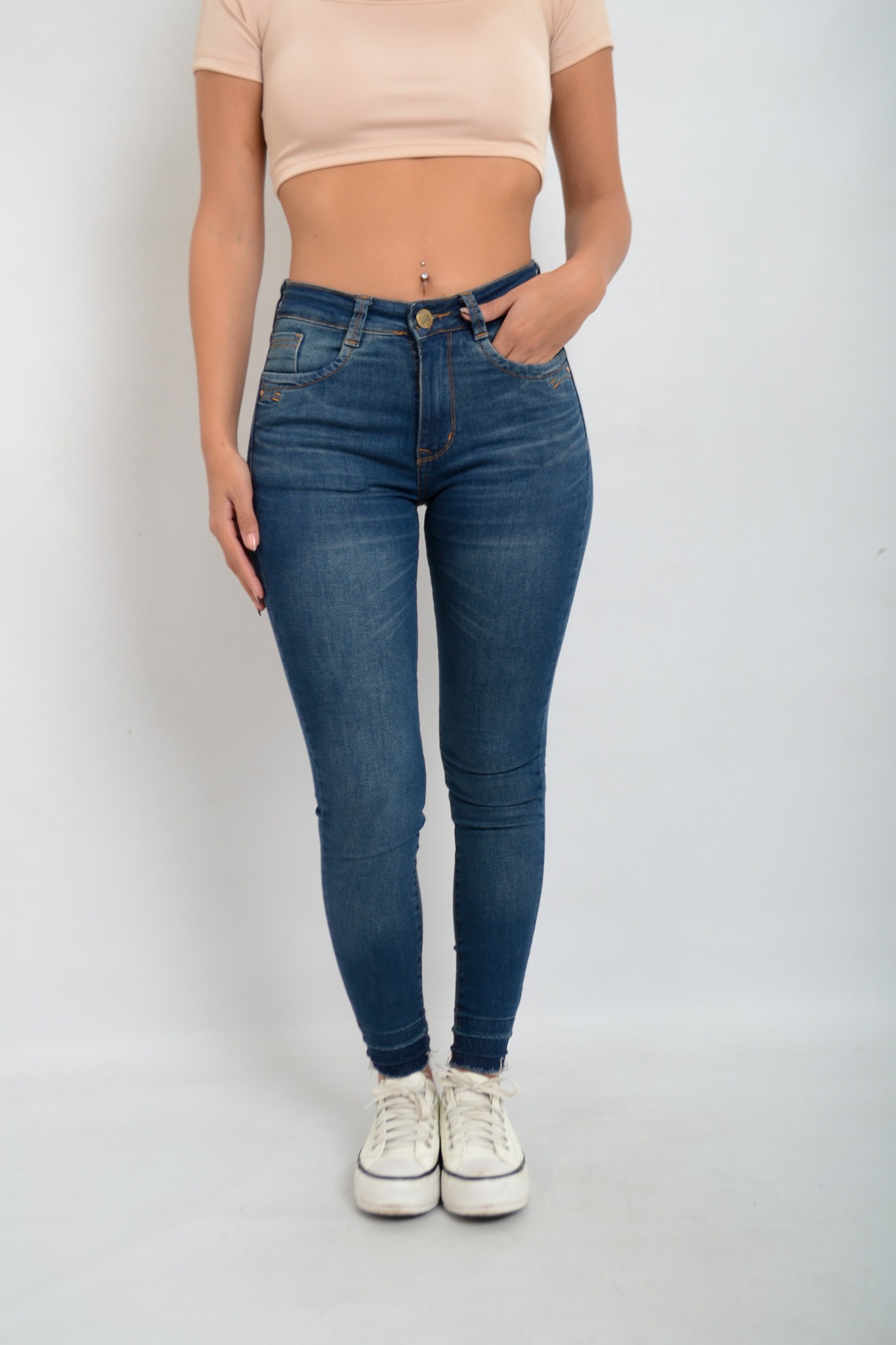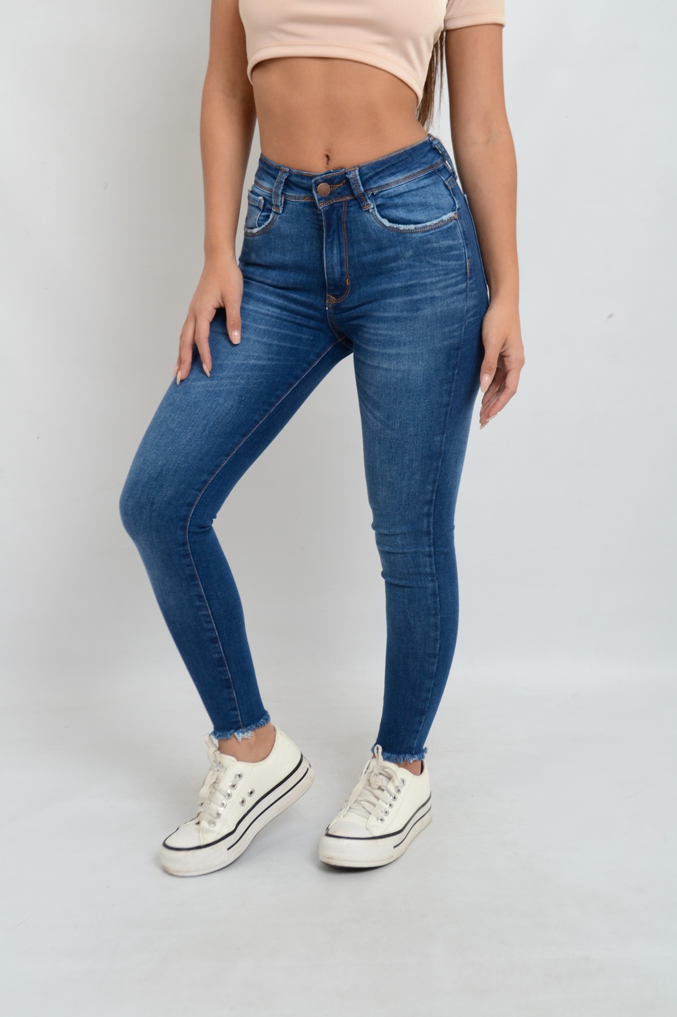 Art. 737 | Jean Chupin Azul Ajustado Clasico Con Localizado Elastizado Tiro Bajo Talles 36-44 Versus