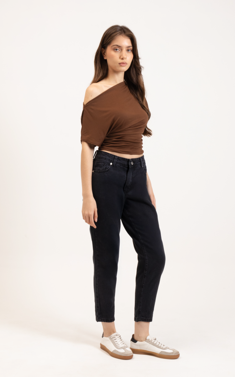 1900 JEAN BAGGY NEGRO DENIM RIGIDO TIRO ALTO TALLES 36 AL 46 INQUIETA
