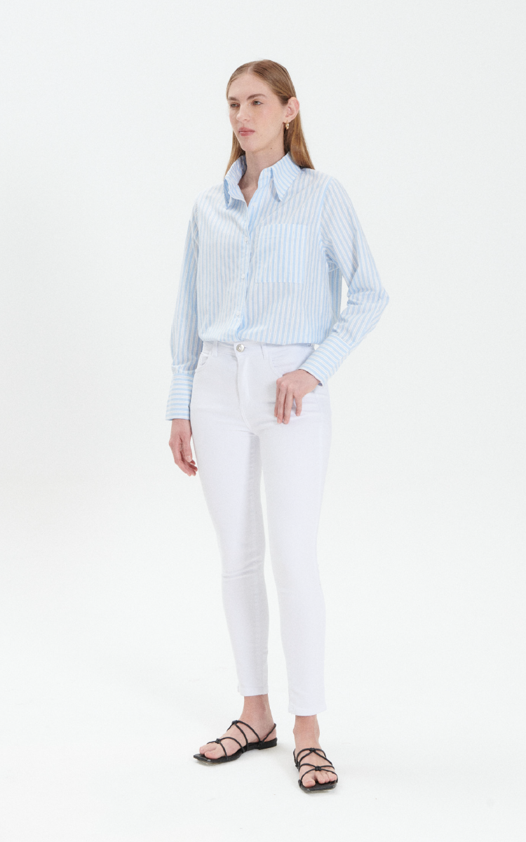 1908 Skinny Jean Clásico tiro alto elastizado Con tajo en botamanga Talles del 36 al 48 Inquieta