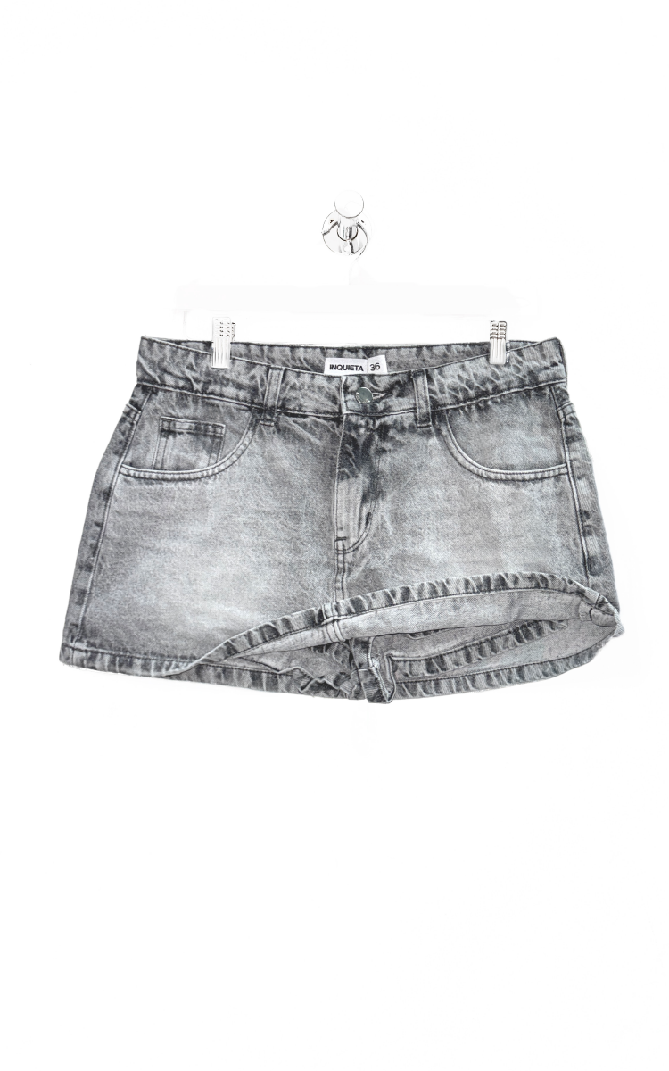 0375 | SKORT DENIM RIGIDO OSCURO FALDA CRUSADA CON BOTON TIRO MEDIO TALLES 36 AL 40 INQUIETA