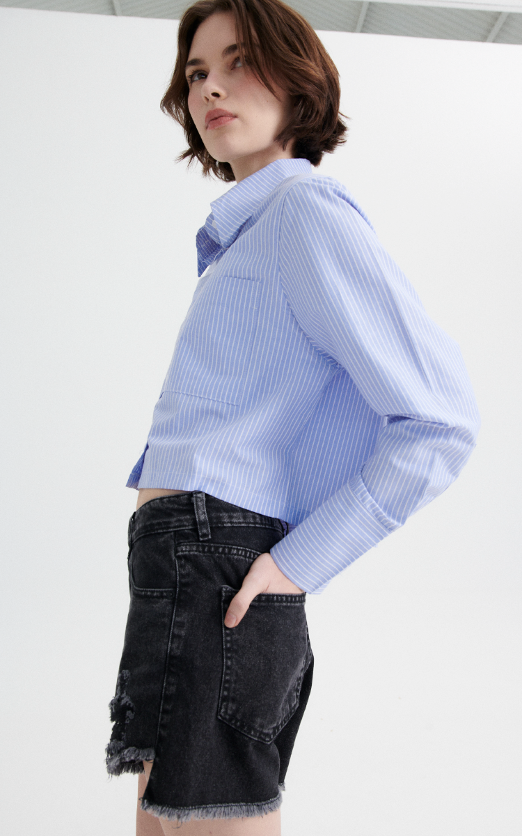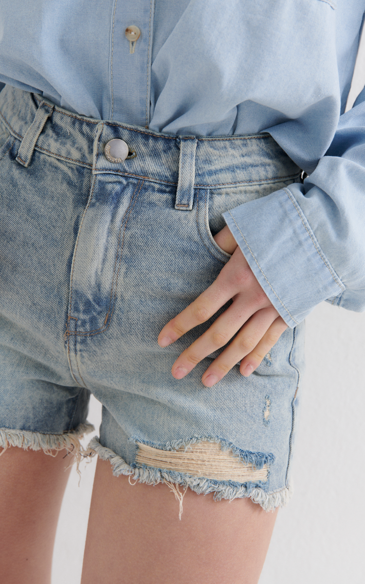 0429 / SHORT BOYFRIEND DENIM DESFLECADO CON DESPUNTE EN RUEDO TIRO MEDIO TALLES 36 AL 46 INQUIETA