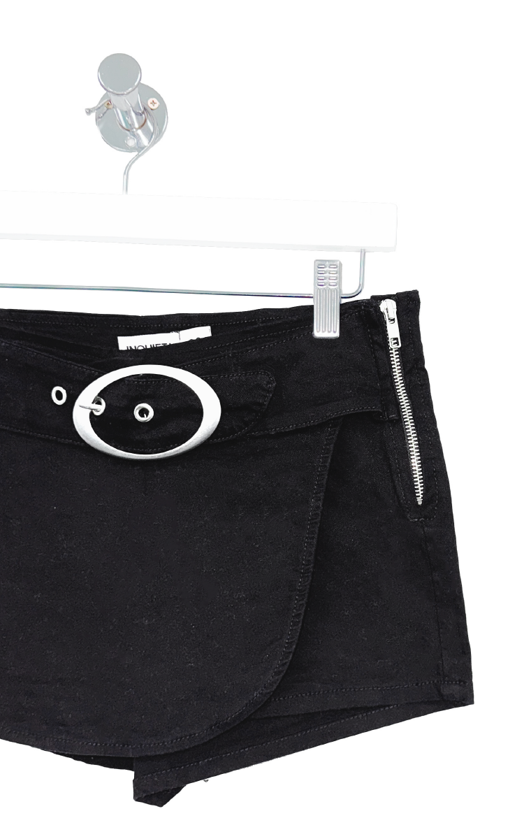 0423 / SKORT DE GABARDINA COMFORT NEGRA CON HEBILLA Y CIERRE TIRO BAJO TALLES 36 AL 46 INQUIETA