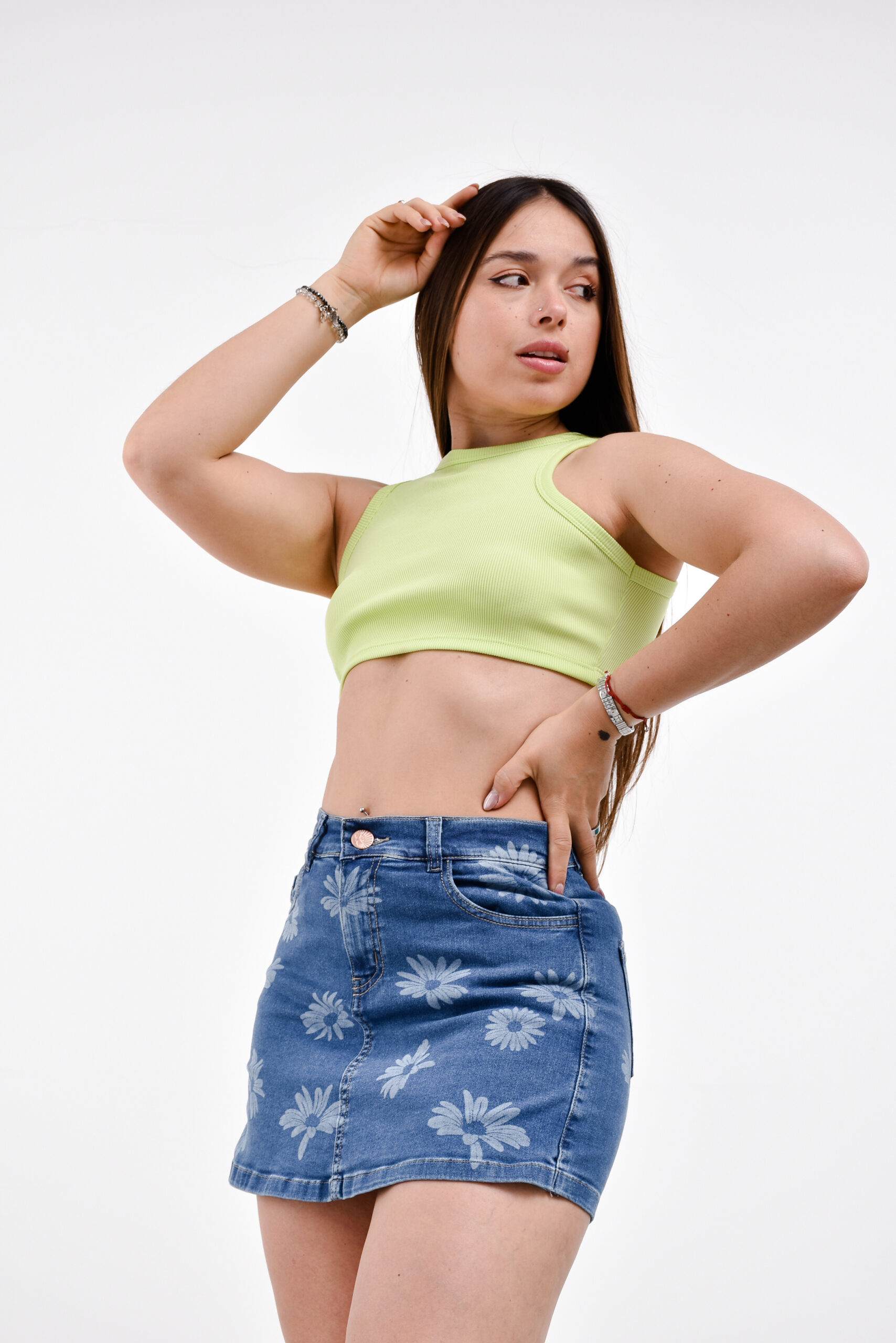 ART. LEYLA | SHORT POLLERA ELASTIZADO CON DISEÑO EN LASER MARGARITA TIRO ALTO TALLES 38 AL 54 RUMAJU