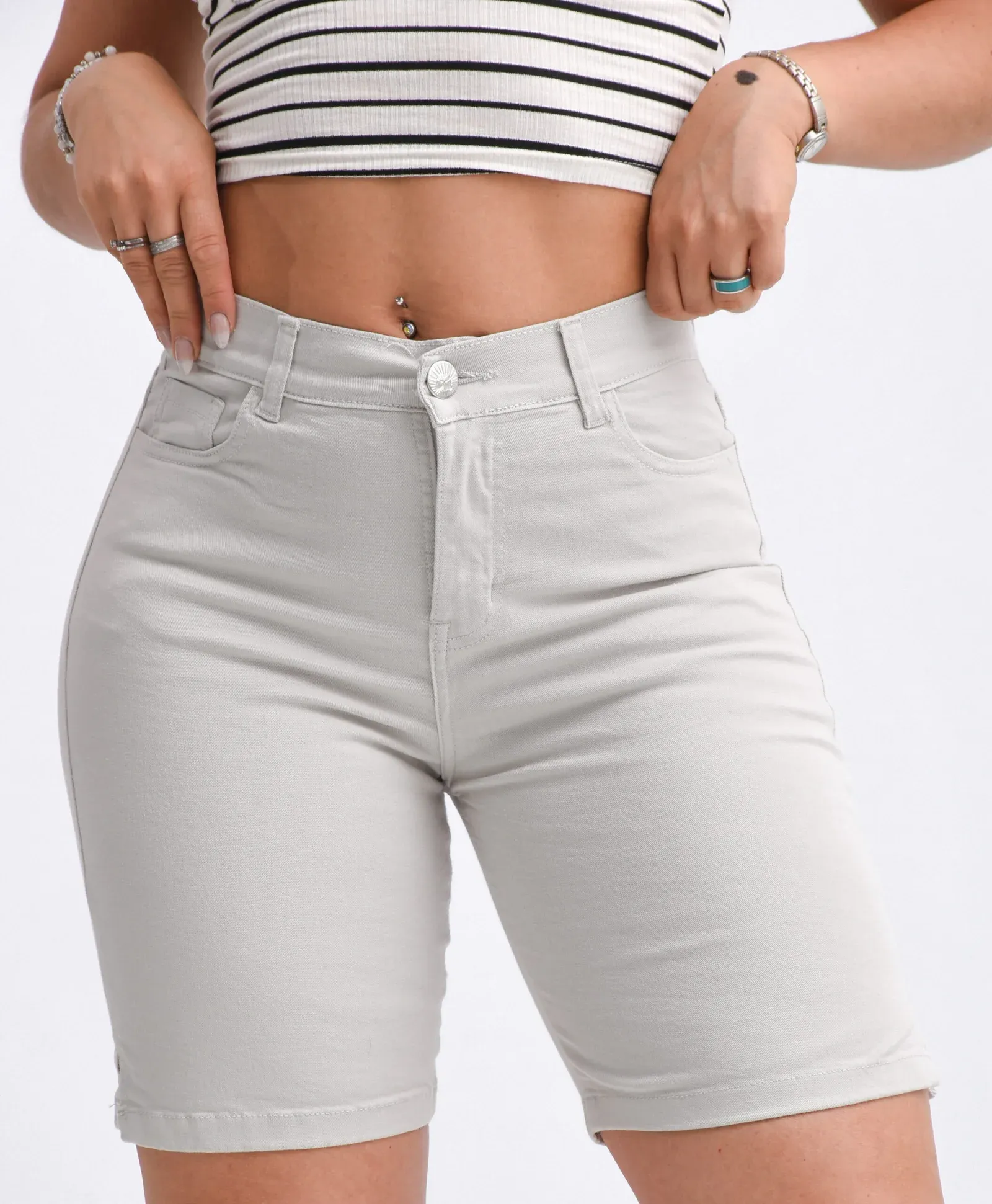 ART. TERRA | BERMUDA CLASICA HUESO CON RECORTE LATERAL ELASTIZADO TIRO ALTO TALLES 40 AL 50 RUMAJU