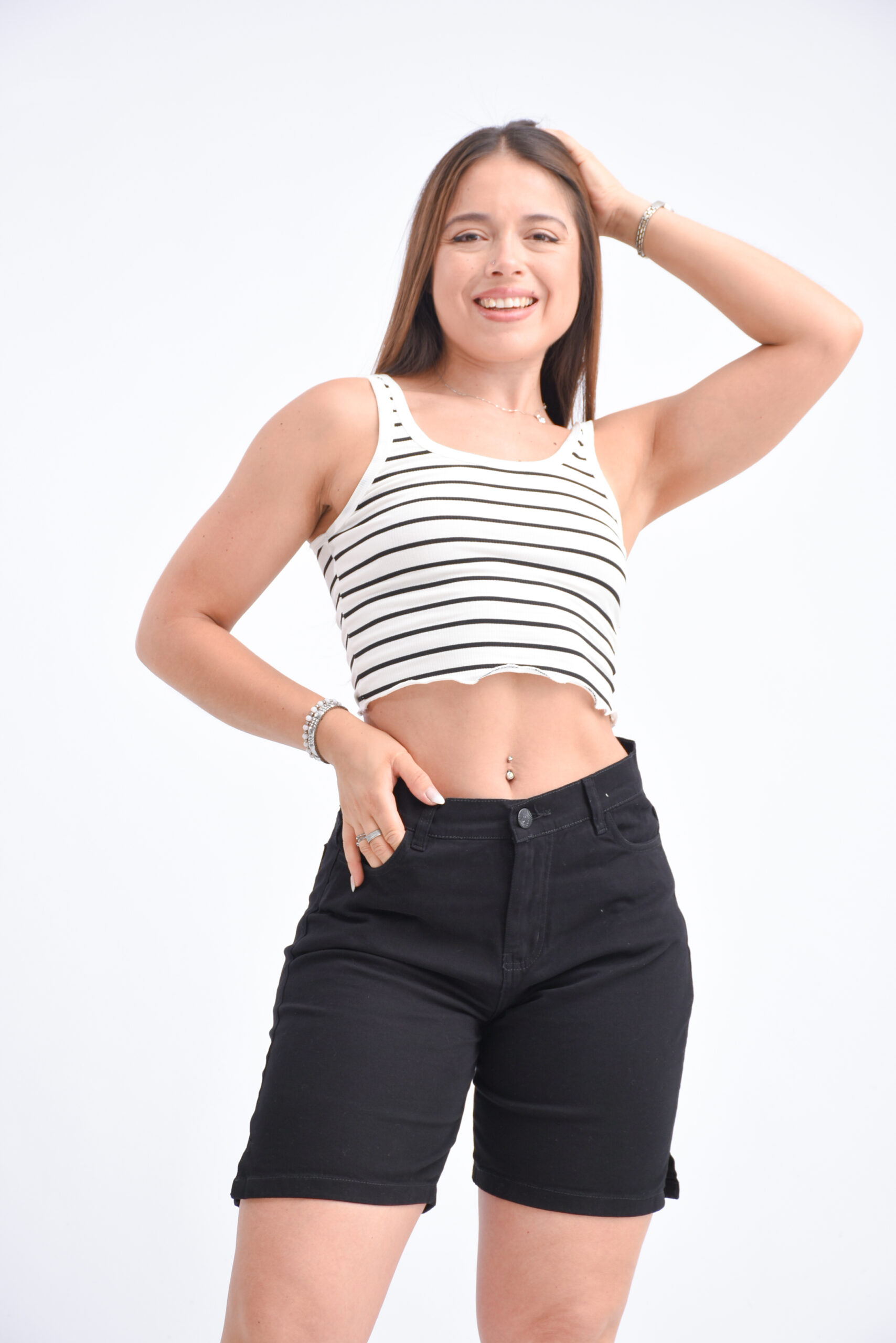 HOLANDA | BERMUDA CLASICA NEGRO ELASTIZADO CON RECORTE LATERAL TIRO ALTO TALLES 40 AL 50 RUMAJU