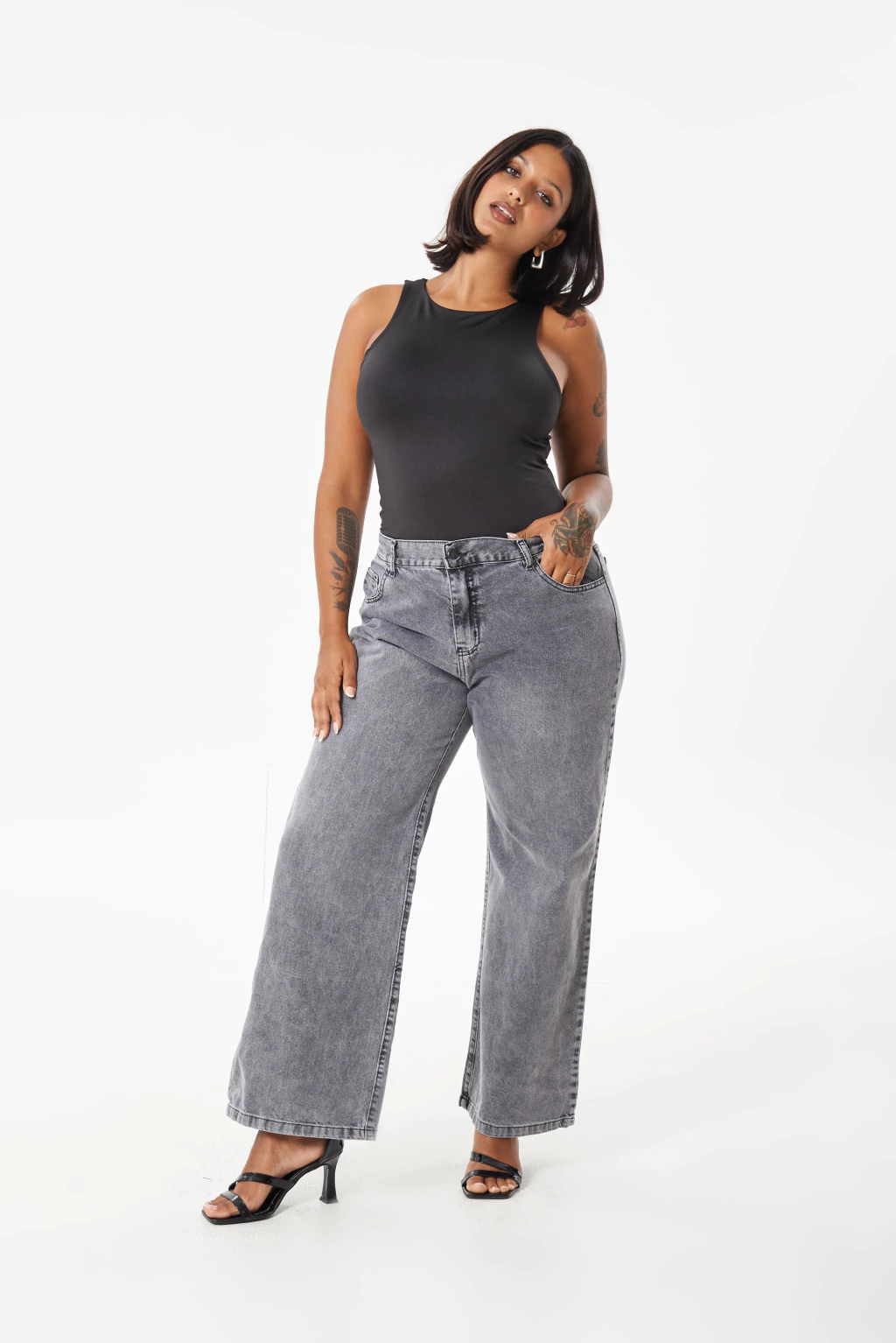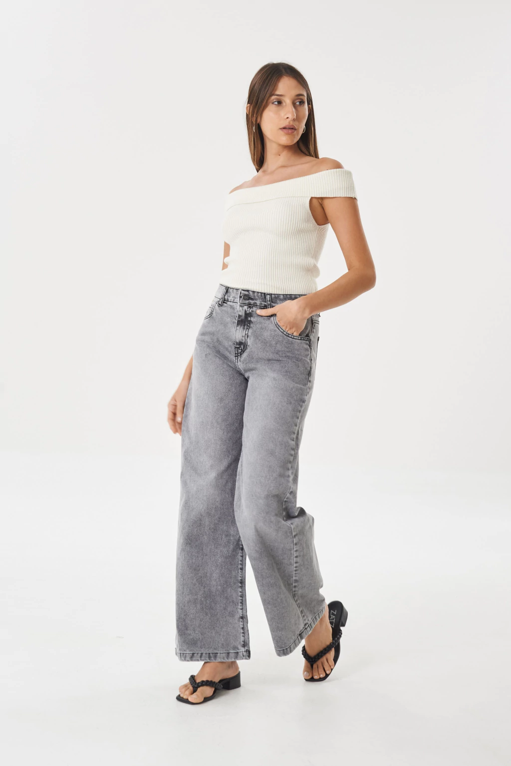 NEBRASKA | WIDE LEG GRIS RIGIDO CON TACHAS EN LOS BOLSILLOS TIRO ALTO TALLES 36 AL 46 STRIVEN