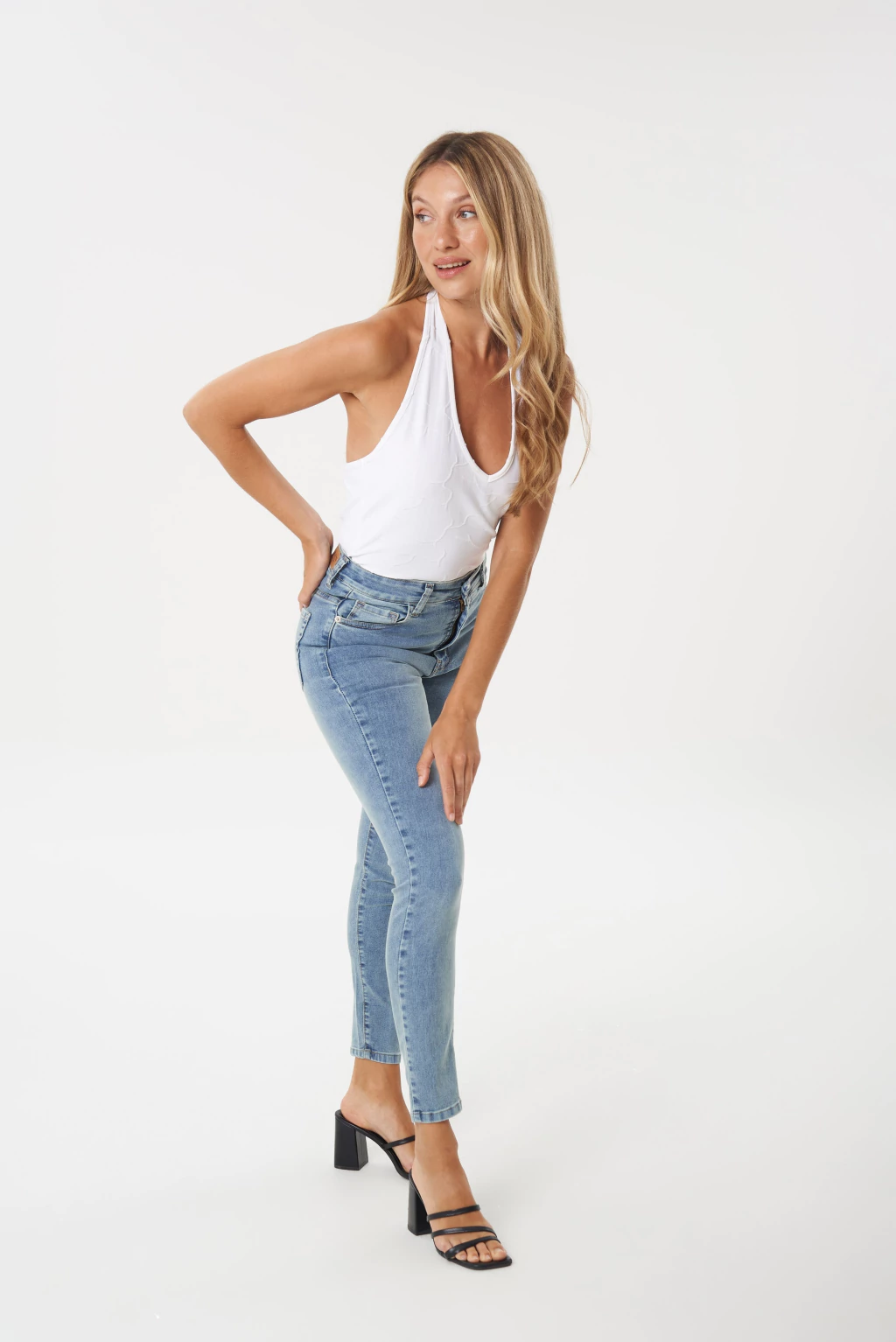 BALTIMORE | Jean Chupin Elastizado Celeste Mujer Talles 36 Al 46 Striven