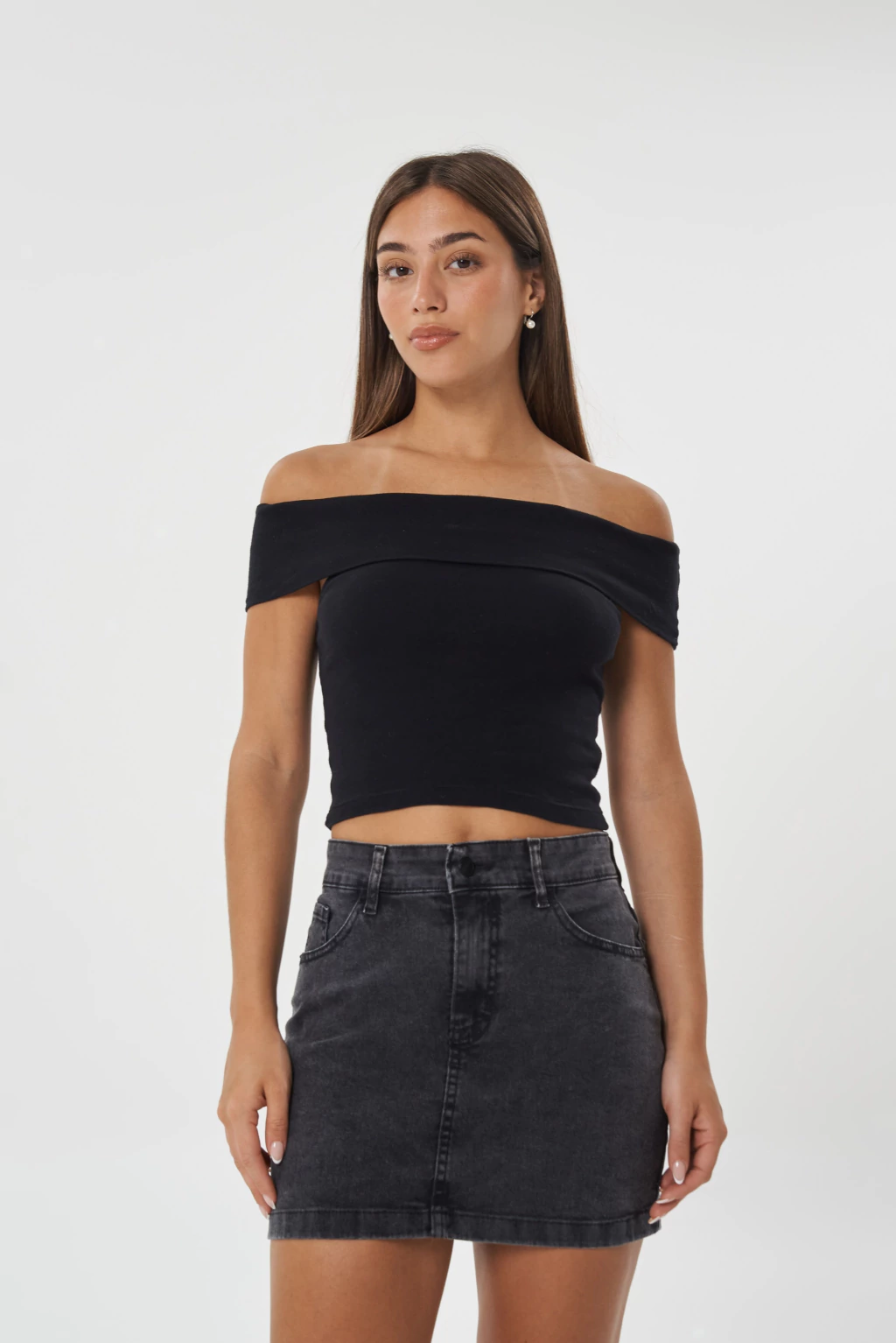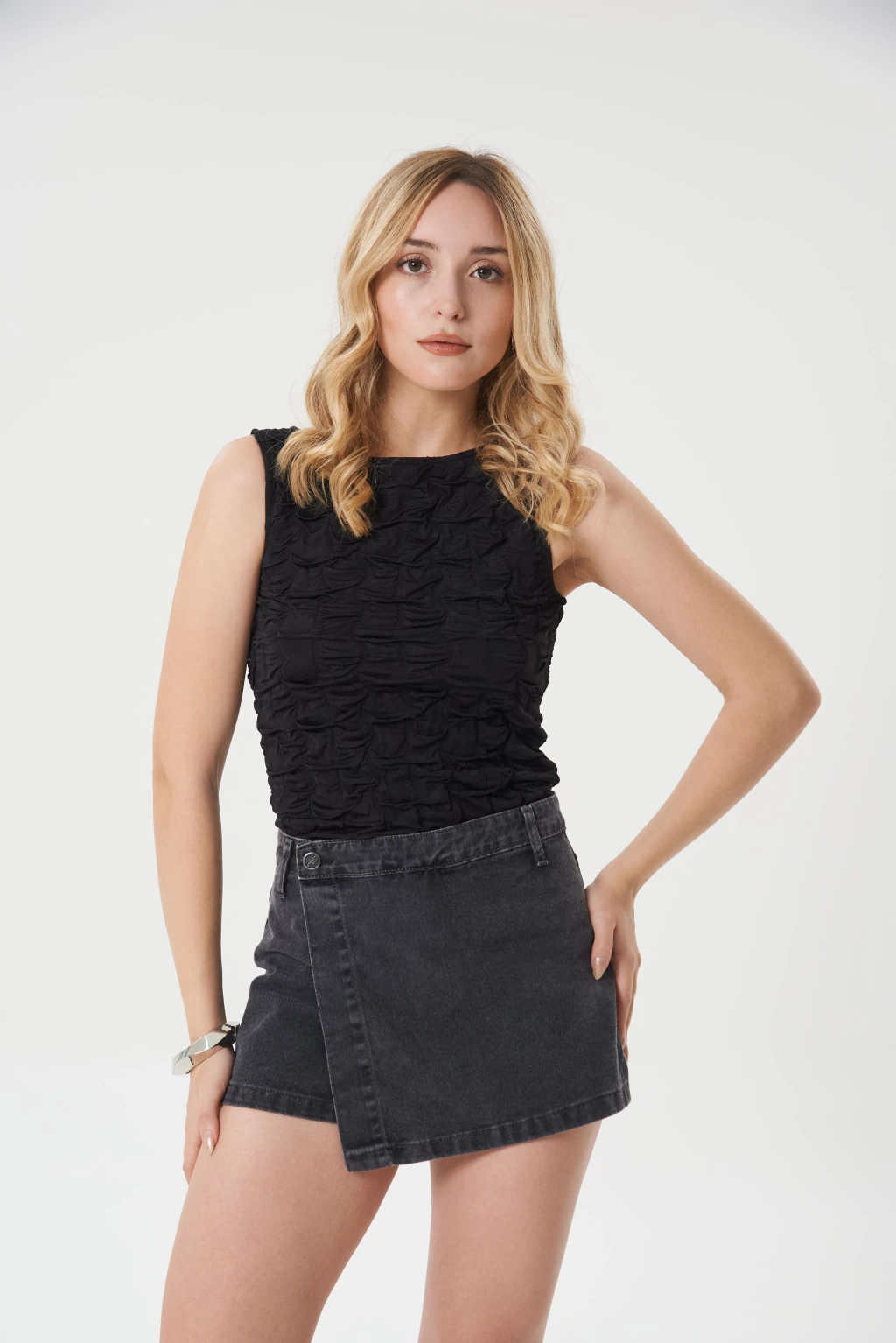 SENSEI-SHORT POLLERA RIGIDA CON SOLAPA FRONTAL TIRO ALTO TALLES 36 AL 46 STRIVEN JEANS
