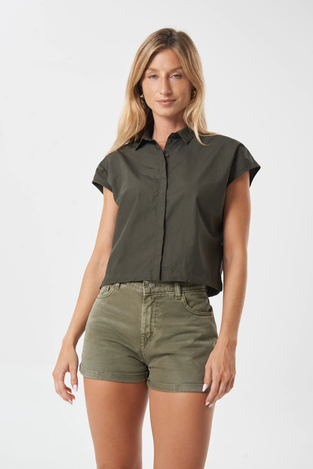 REBEL-SHORT RIGIDO VERDE CON RUEDO ROLL UP TIRO ALTO TALLES 36 AL 46 STRIVEN JEANS