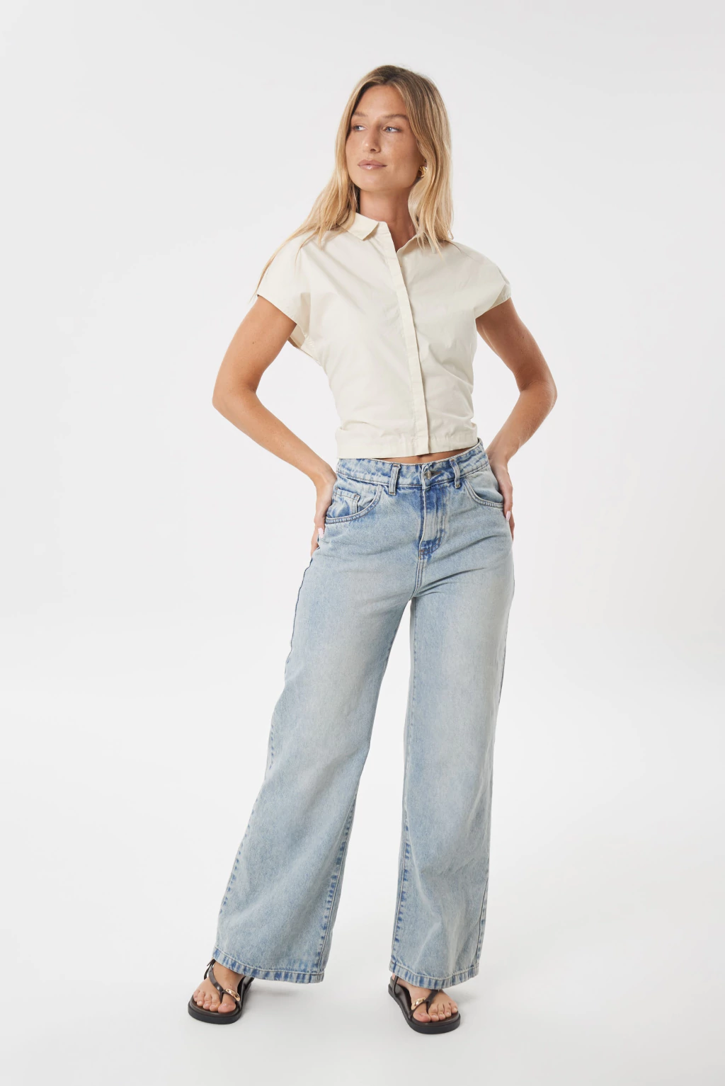 SIDE – SEMI BERMUDA CELESTE CON BIGOTES Y DESFLECADO EN BOTA TIRO ALTO TALLES 36 AL 46 STRIVEN JEANS