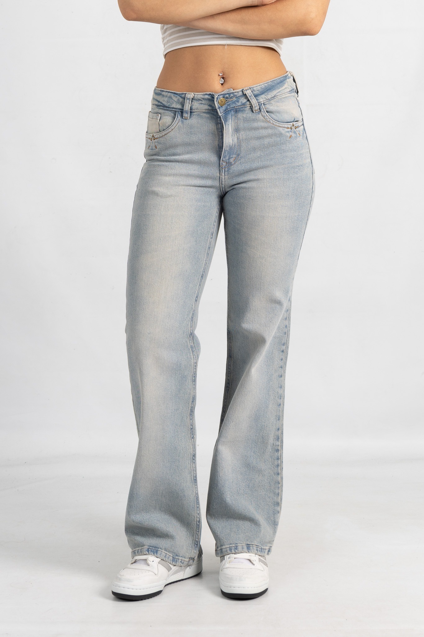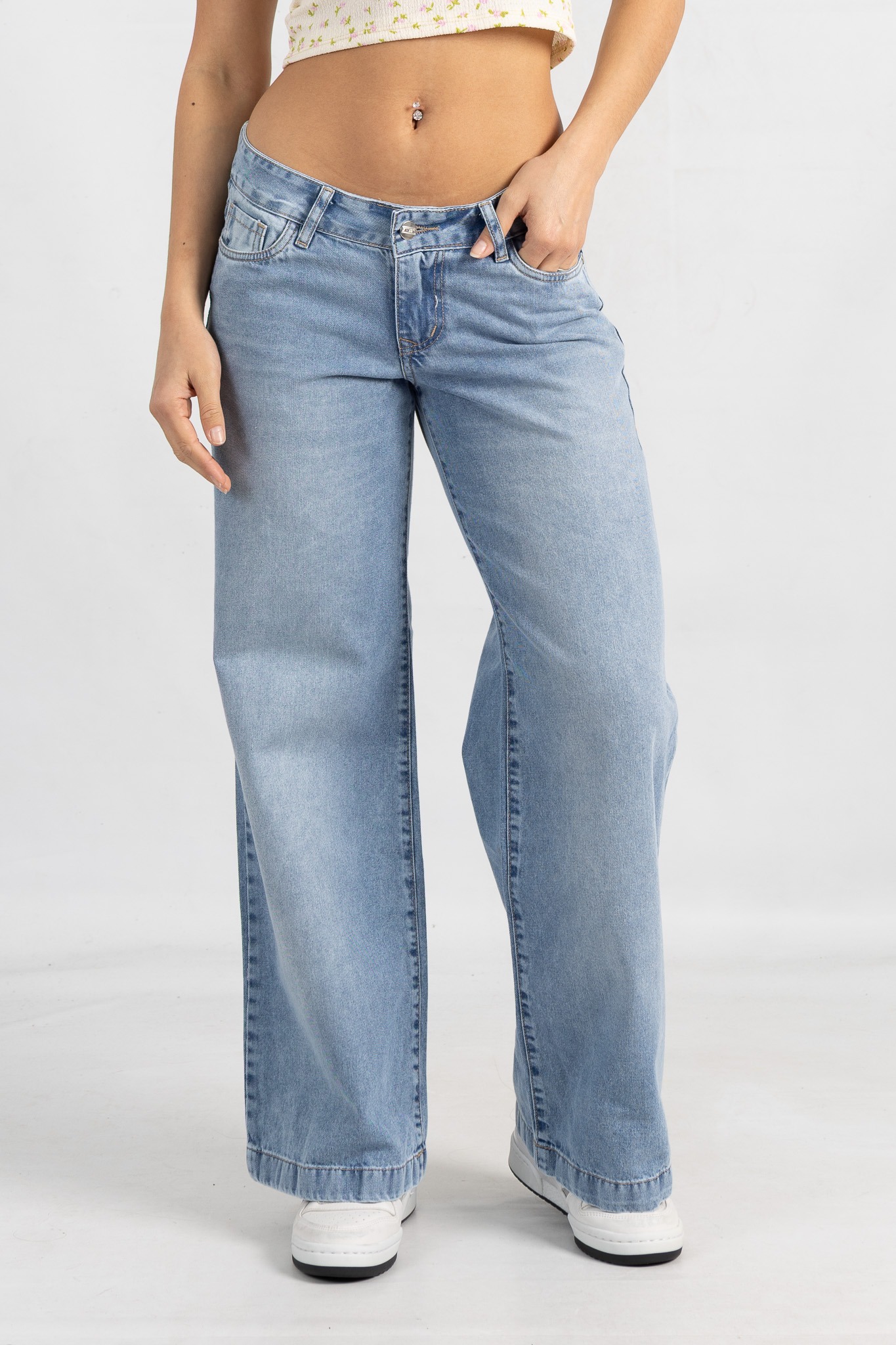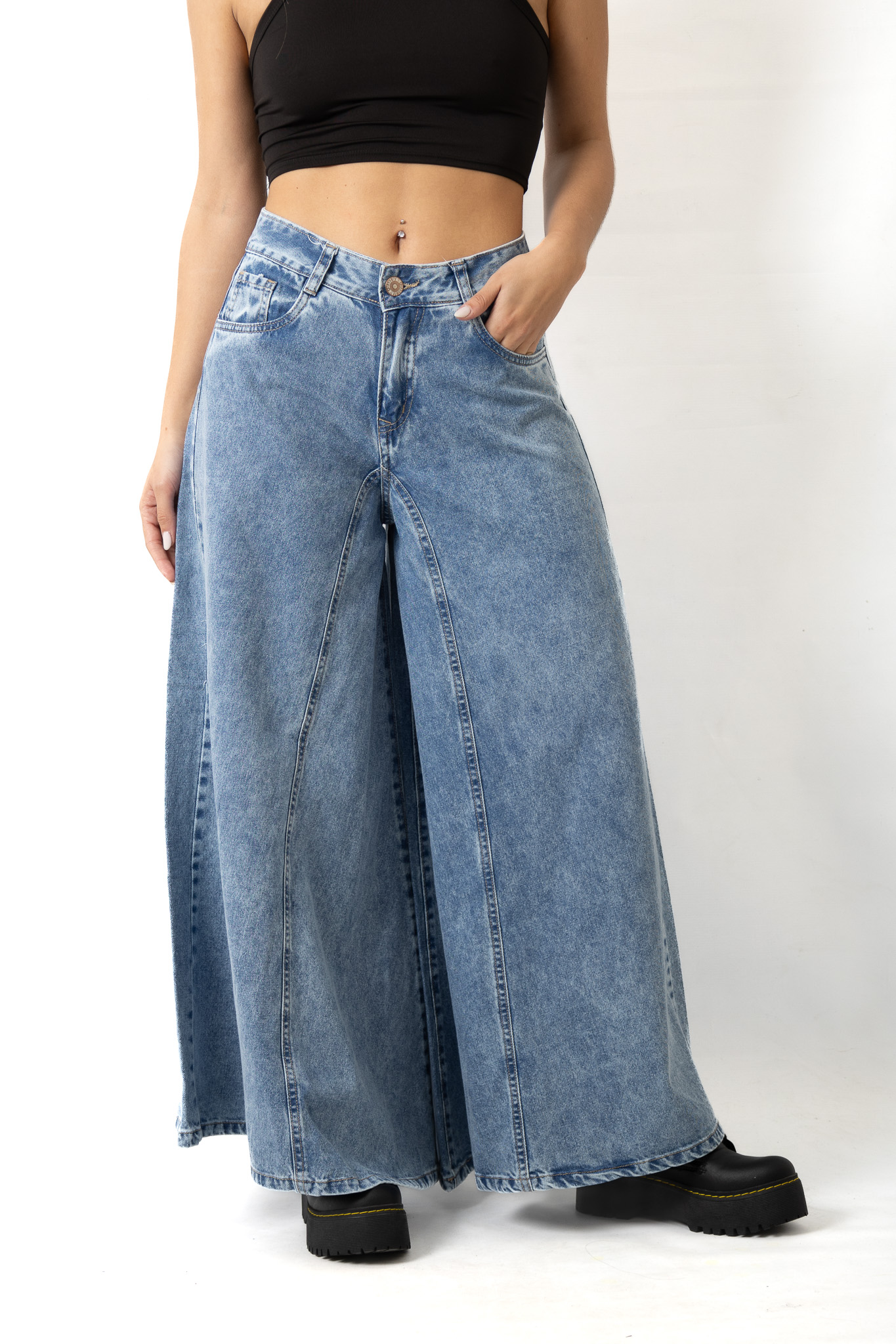 Art. 844 | Wide Leg Matizado celeste con bigote Elastizado tiro alto talles 36 al 46 andar