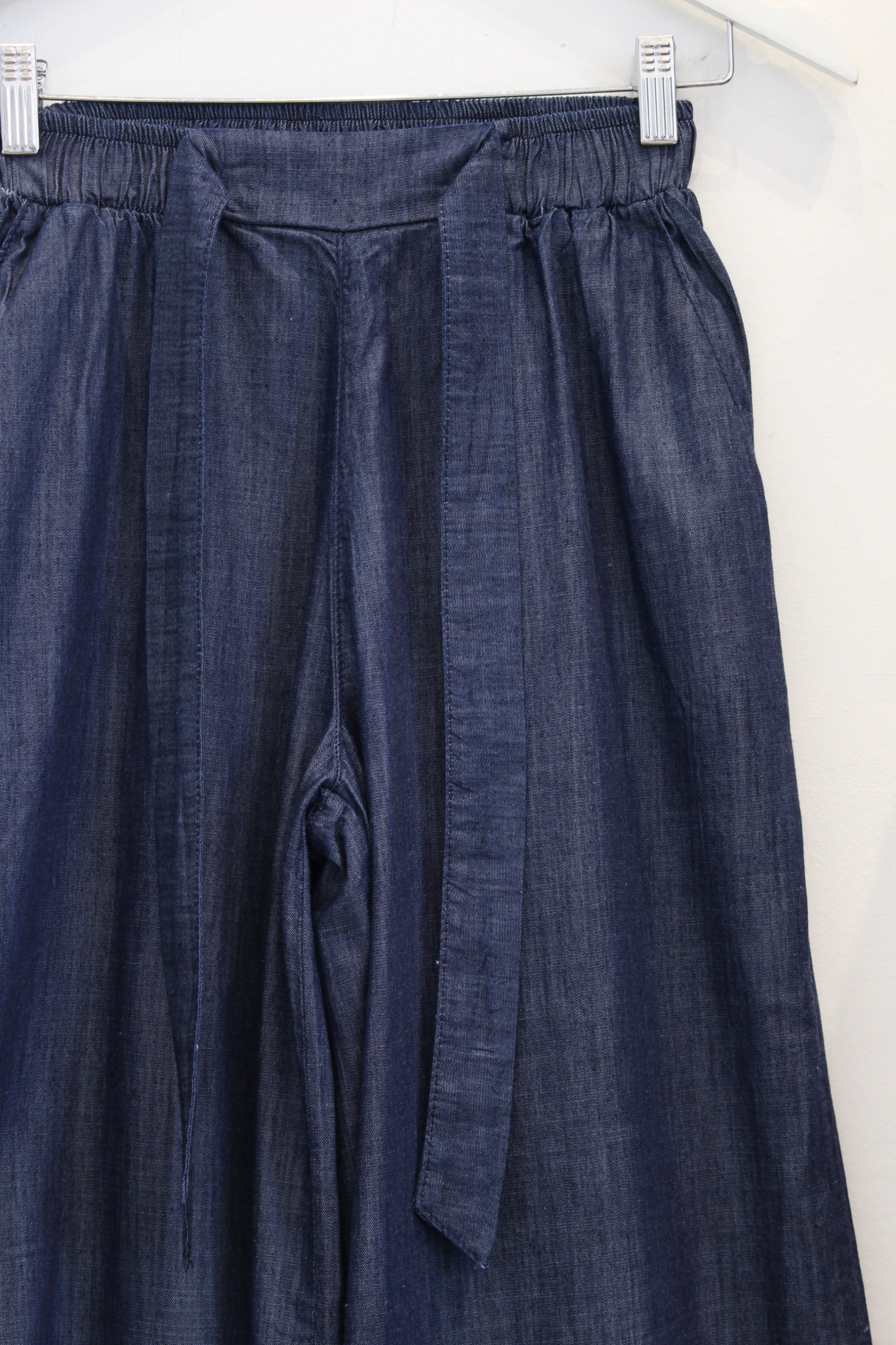 001 | PALAZZO AZUL RIGIDO CON CINTURA ELASTICA Y CINTA PARA MOÑO TIRO ALTO TALLES 40 AL54 DEKA