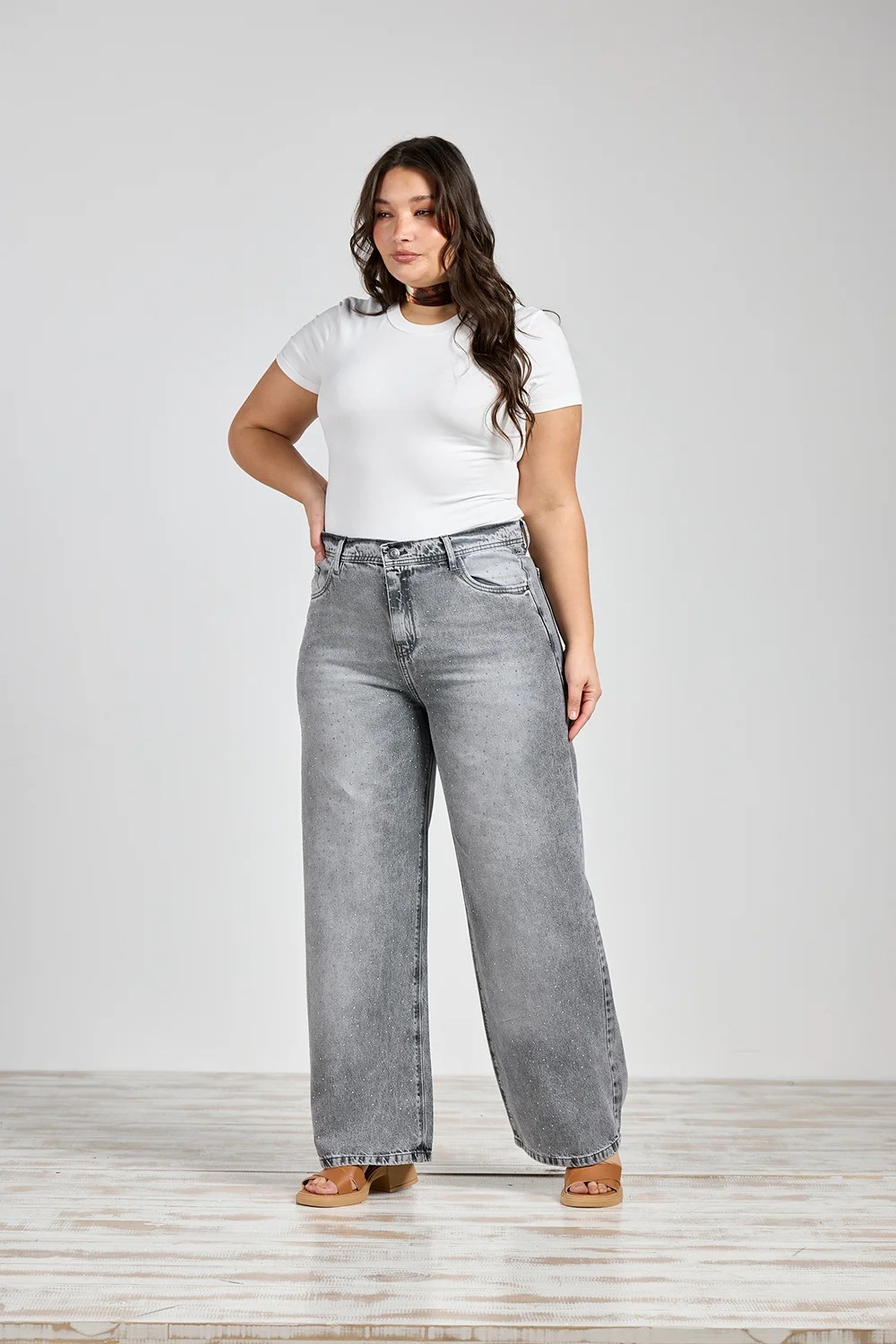 ART. 853 | WIDE LEG GRIS CON STRASS RÍGIDO TALLES 46 AL 54 CENITHO