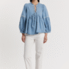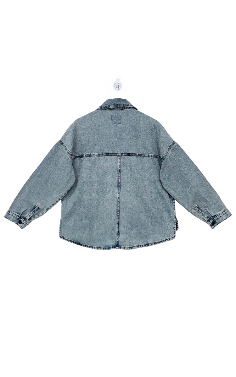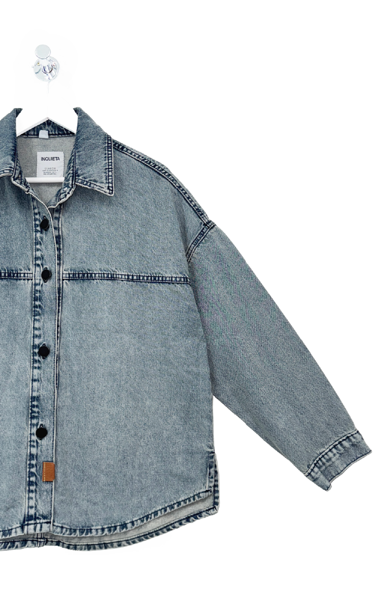 0077 / CAMISACO DENIM AZUL CON BOTONES FRONTALES NEGROS Y TAJOS LATERALES TALLES S AL XL INQUIETA