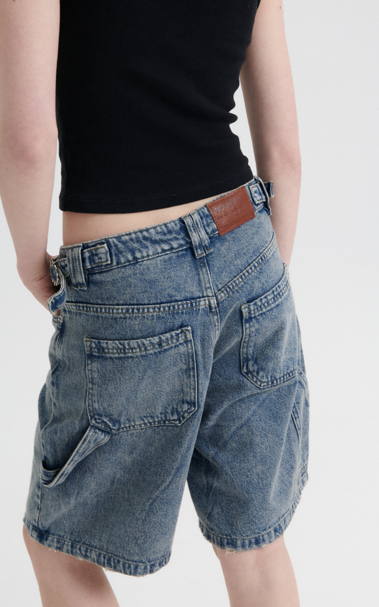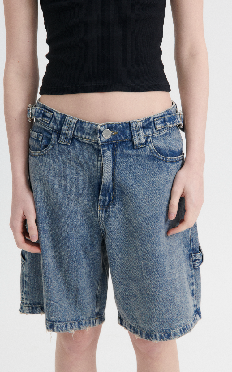0379 | BERMUDA CARPENTER AZUL RIGIDO CON TIRAS Y REGULADORES EN LATERALES TALLE 36 AL 46 INQUIETA