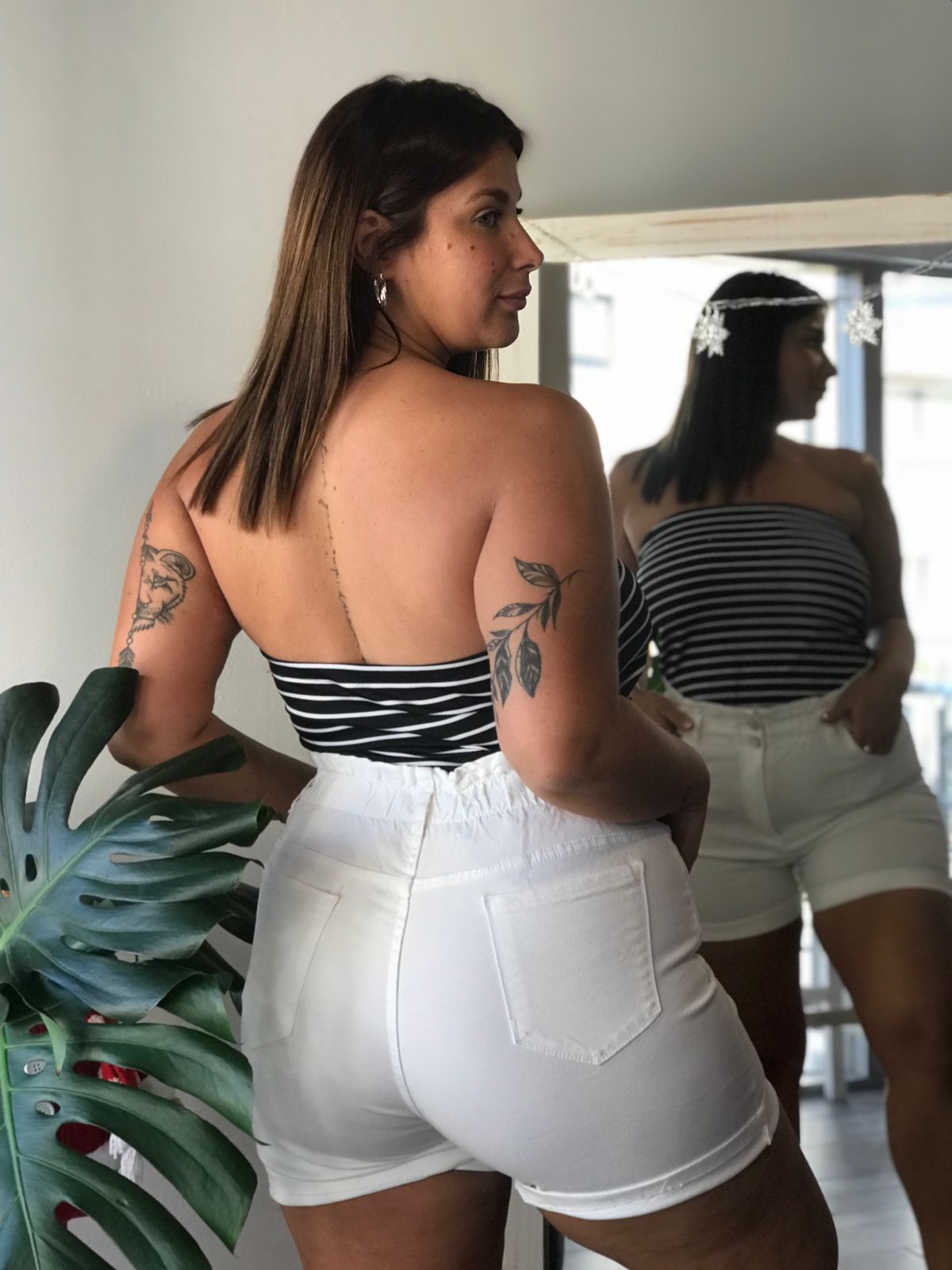 10114 – SHORT BAGGY NATURAL CON CINTURA FRUNCIDA ELASTIZADO TALLES 46 AL 60 CRISAL