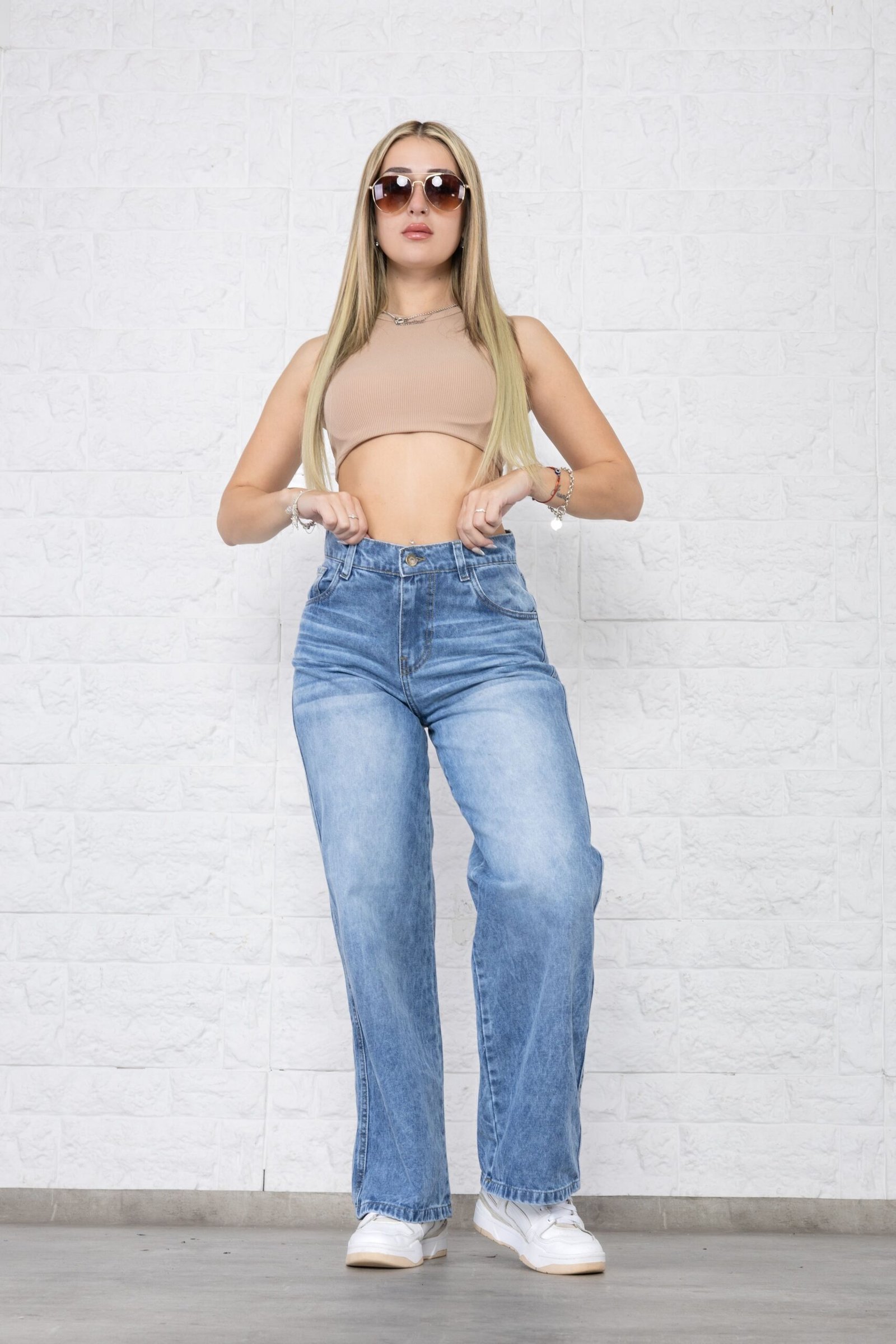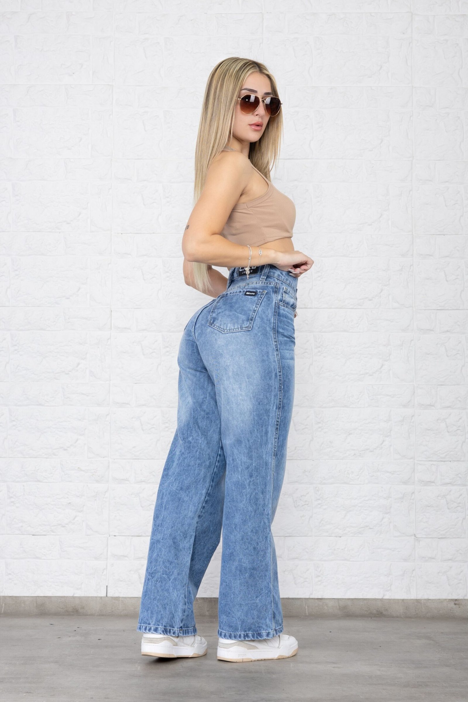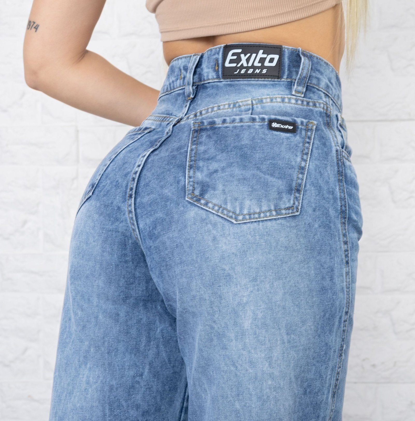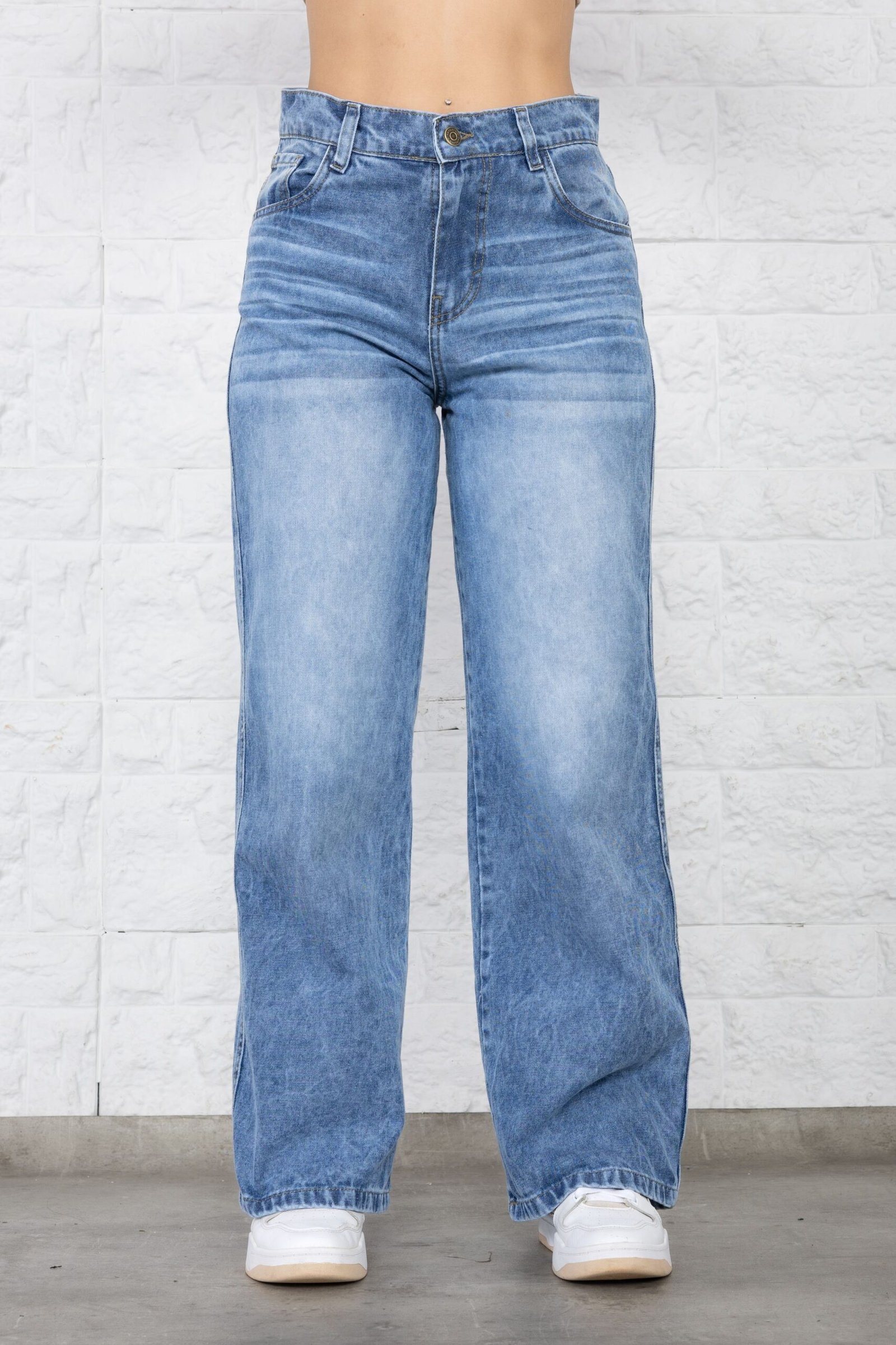 126 | WIDE LEG CELESTE RIGIDO CON BIGOTES TIRO MEDIO TALLES 36 AL 46 EXITO JEANS
