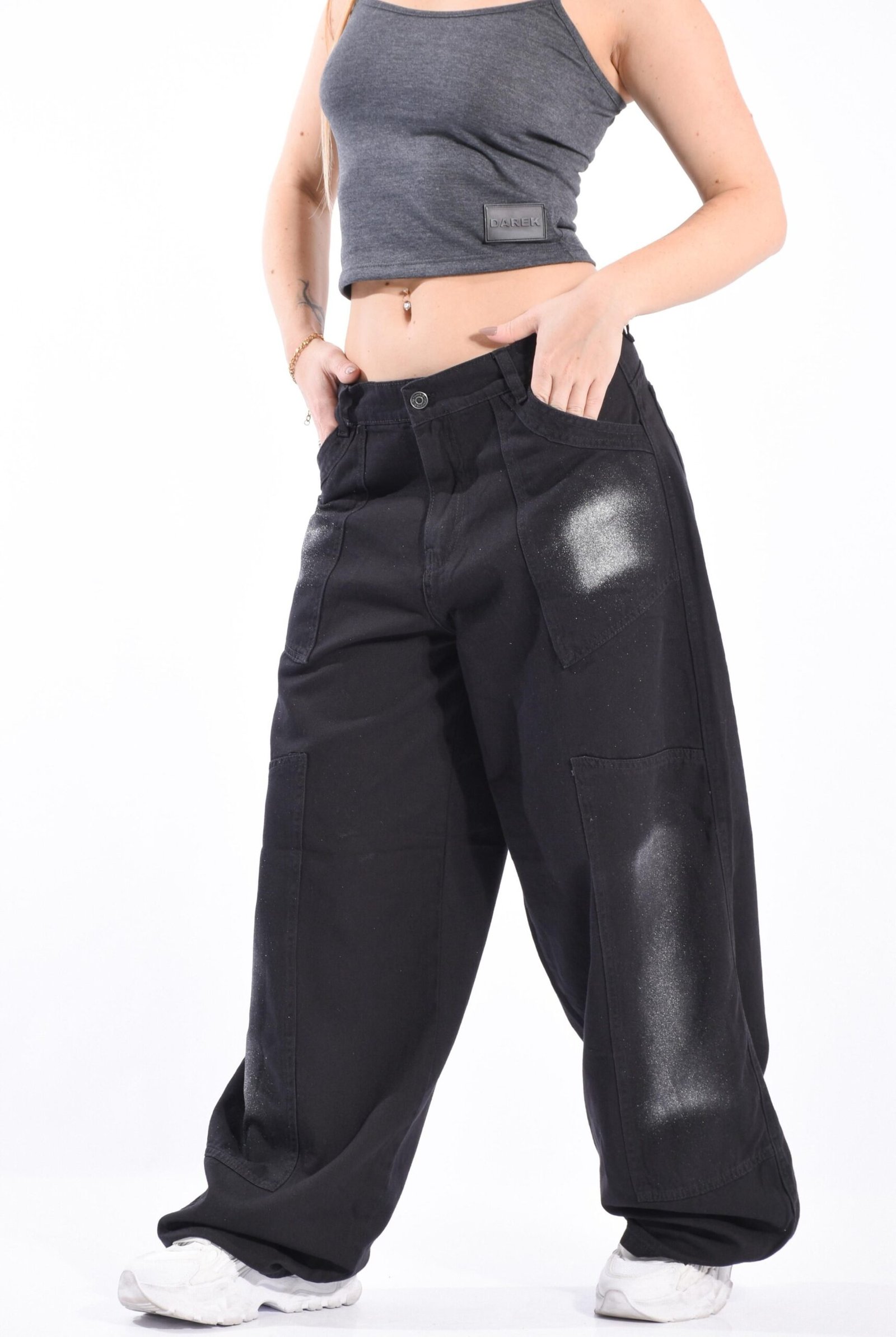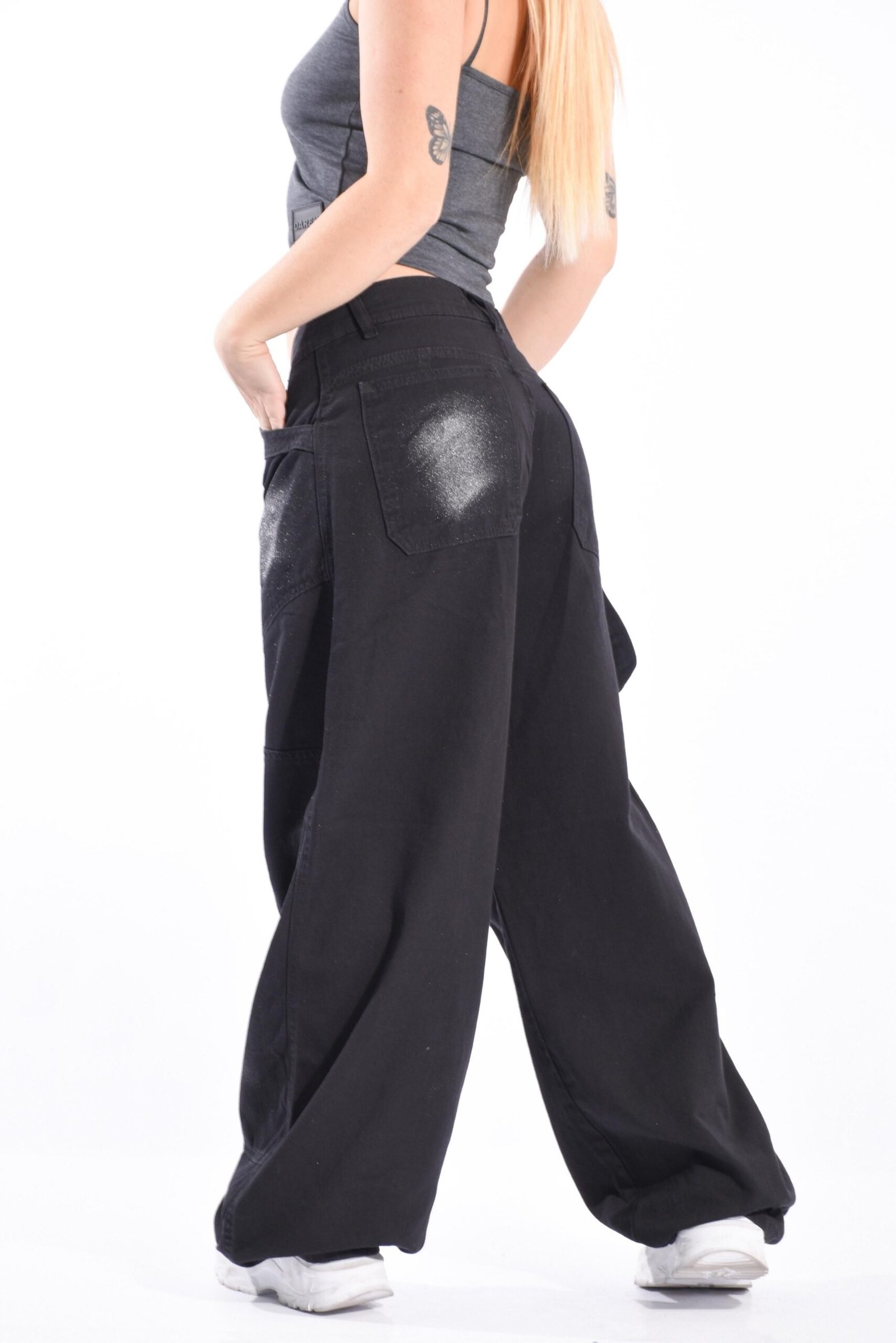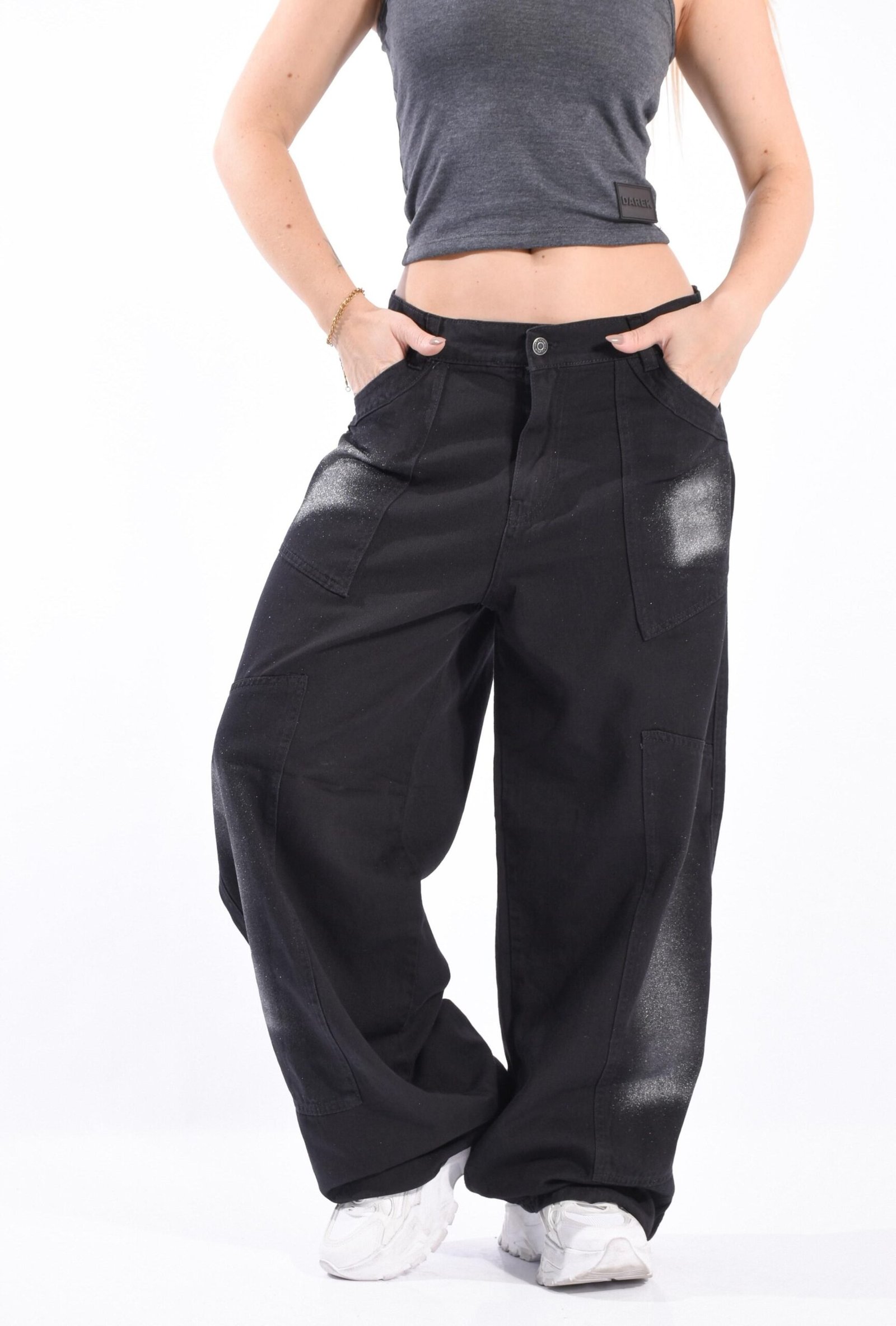 127N | JEAN BAGGY OVERSIZE RIGIDO NEGRO DISEÑO BRILLO EN SPRITE TIRO MEDIO TALLES 36 AL 46 EXITO JEANS