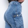 310 I JEAN MULTICARGO AZUL LAVADO DESFLECADO EN BOTA TIRO ALTO TALLES 36 AL 46 EXITO JEANS