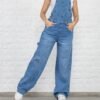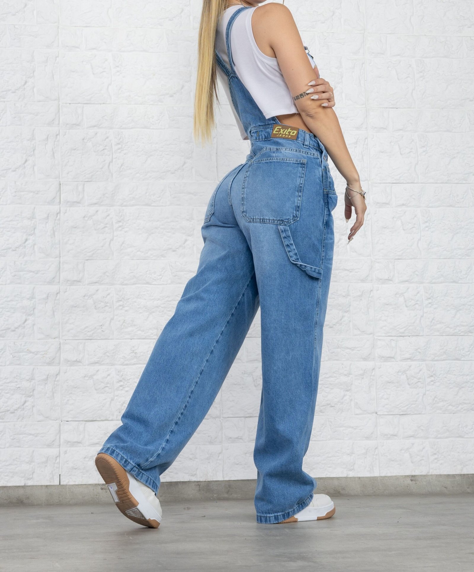 152 | JARDINERO CLASICO RIGIDO CELESTE OVERSIZE CON BIGOTES TALLES 36 AL 46 EXITO JEANS