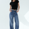 1784 Jean Wide Leg mini roturas Rígido de Tiro Alto Talles 36 al 46 Inquieta