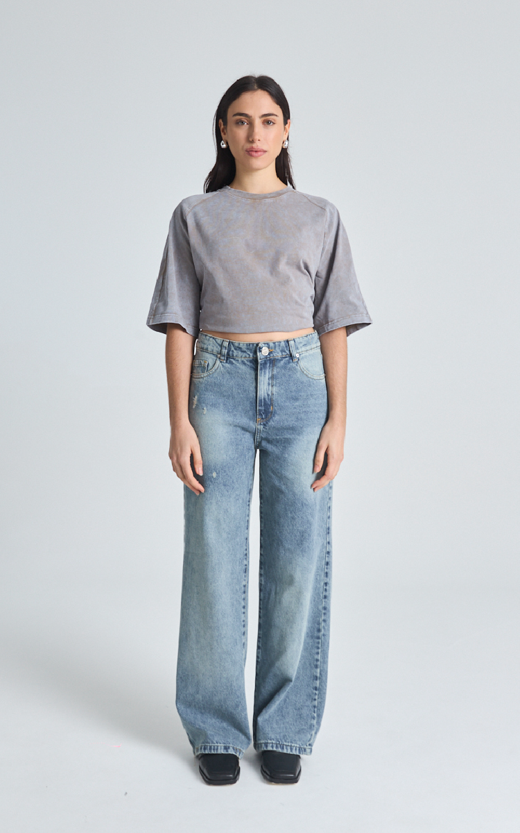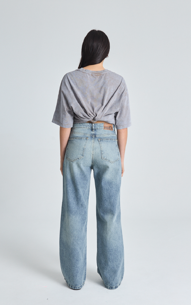1784 WIDE LEG AZUL MATIZADO LOCALIZADO TIRO ALTO TALLES 36 AL 46 INQUIETA