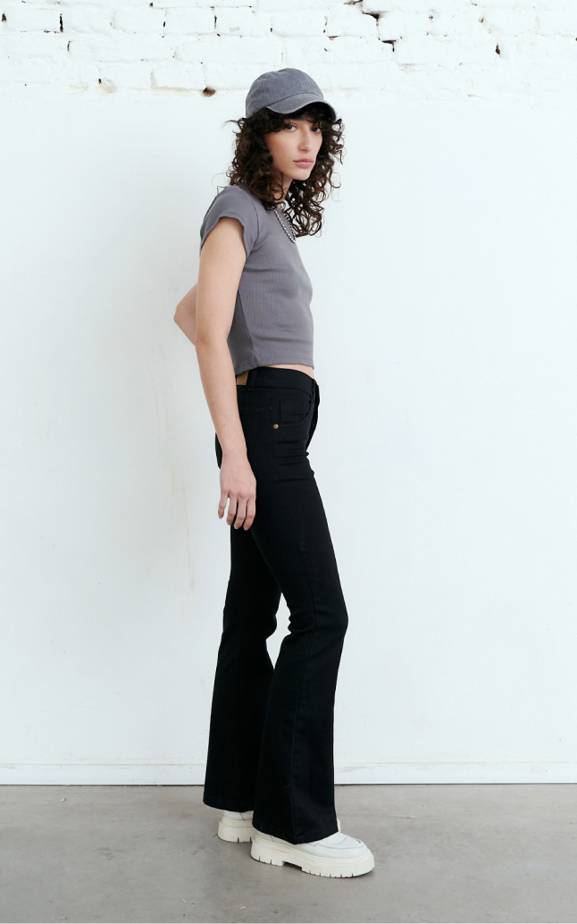 2314 | Plus Size Flare Crop Tiro Alto Claro Talles 44 Al 54 Inquieta