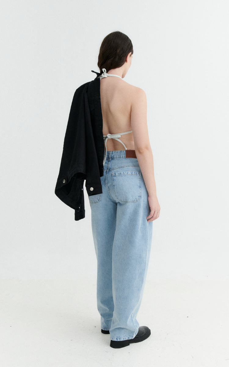 1852 JEAN BAGGY CELESTE RIGIDO CORTE GLOBO TIRO MEDIO TALLES 36 AL 44 INQUIETA