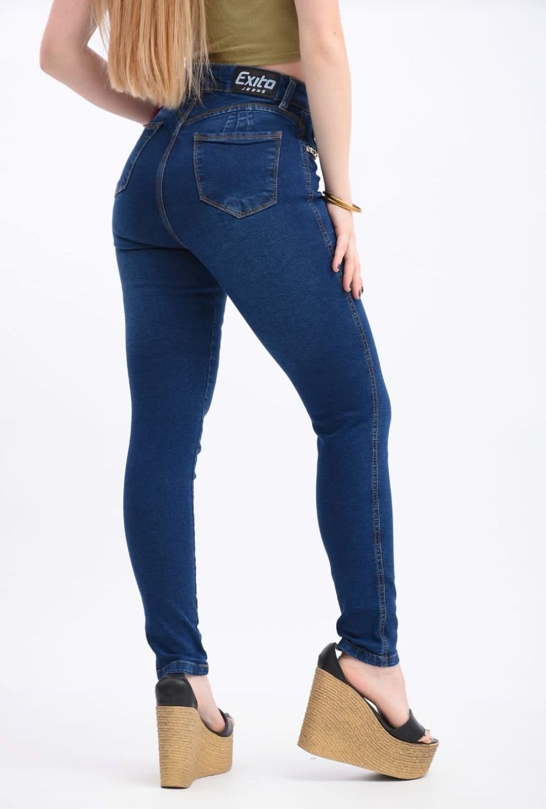 201CAD | JEAN SKINNY AZUL ELASTIZADO CON CADENAS EN BOLSILLOS TIRO ALTO TALLES 36 AL 50 EXITO JEANS