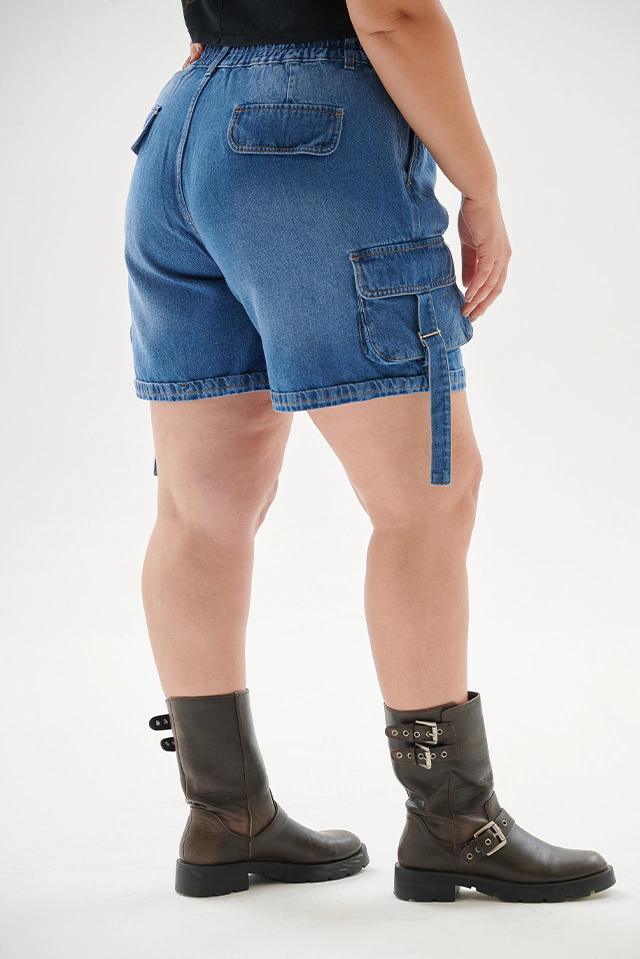 2118 | SHORT DENIM CARGO STONE CON CINTURA ELÁSTICA RIGIDO TALLES 48 AL 56 GORSI
