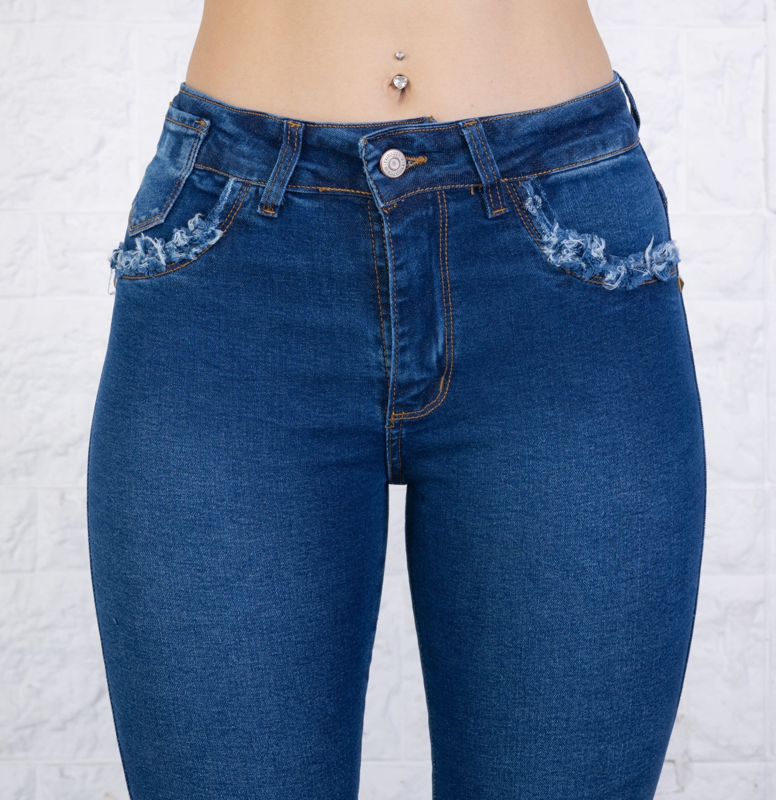 520 | SKINNY JEAN AZUL TRES BOTONES ELASTIZADO TIRO ALTO TALLES 36 AL 50 EXITO JEANS