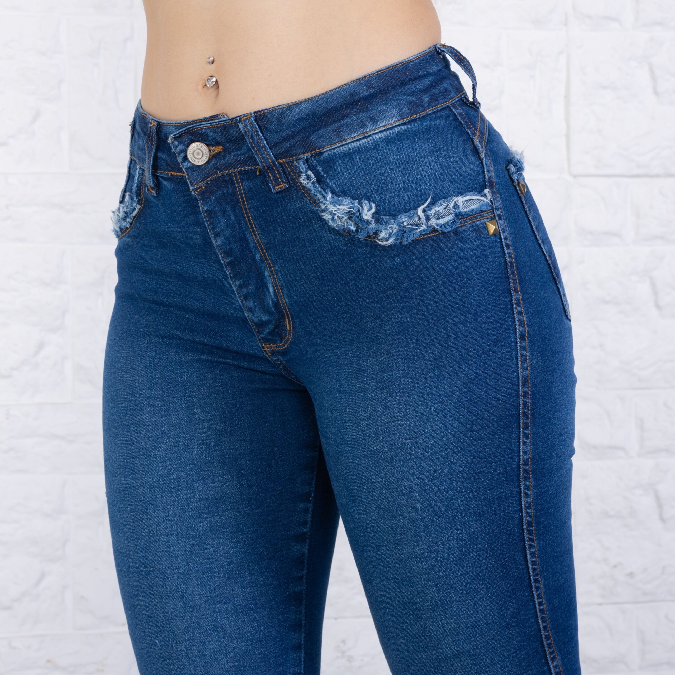 201CAD | JEAN SKINNY AZUL ELASTIZADO CON CADENAS EN BOLSILLOS TIRO ALTO TALLES 36 AL 50 EXITO JEANS