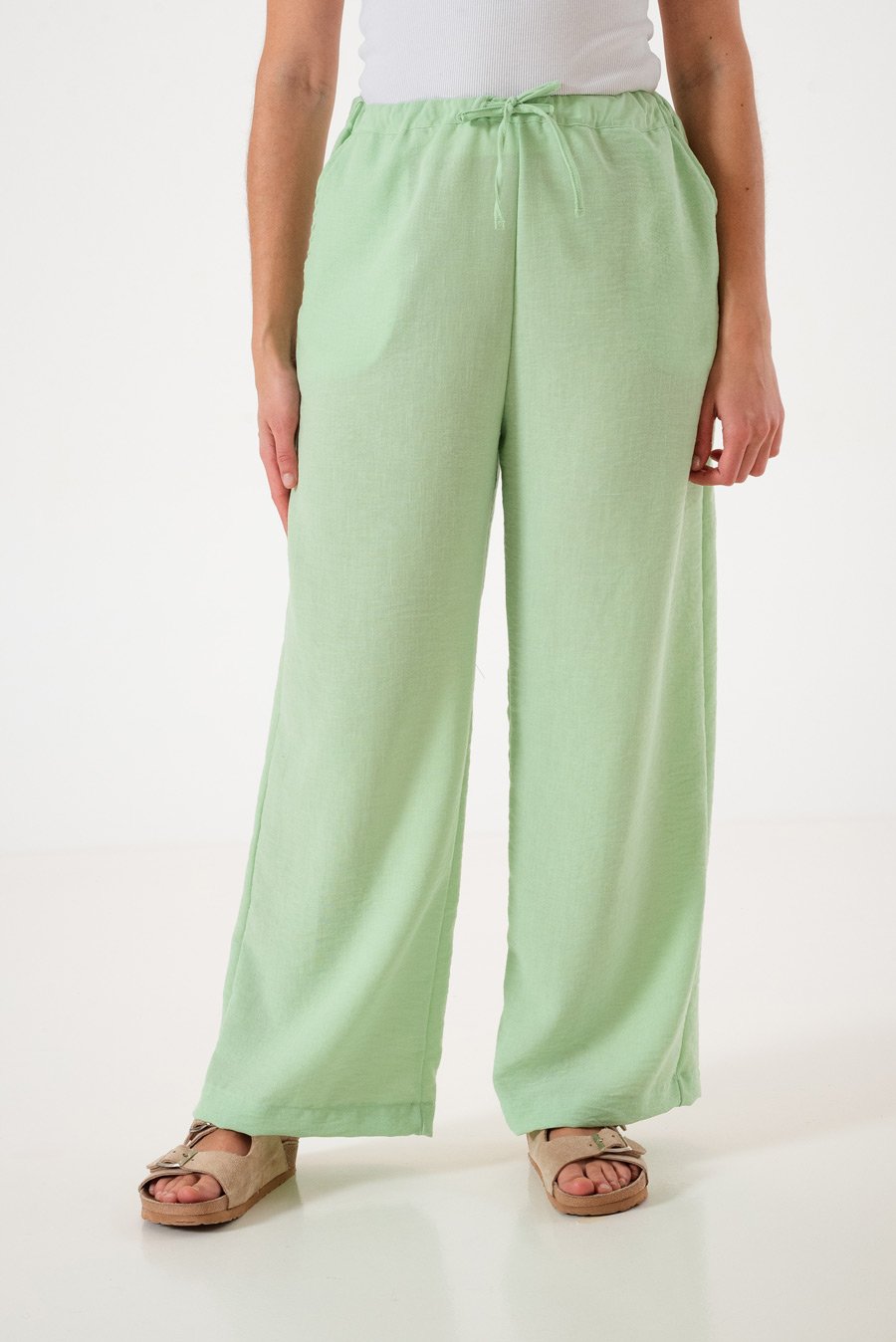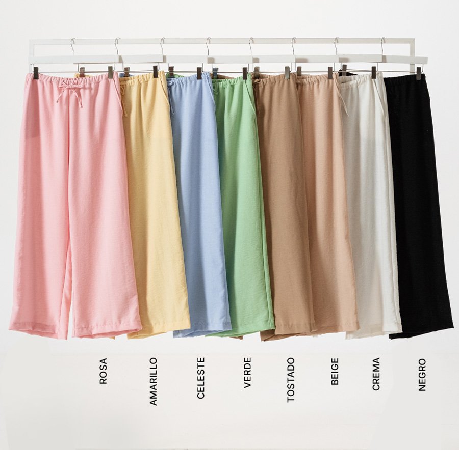 KY015 Palazzo Lino Rustico Con Elástico En Cintura y Cordón Ajustable Talles M Al XXL