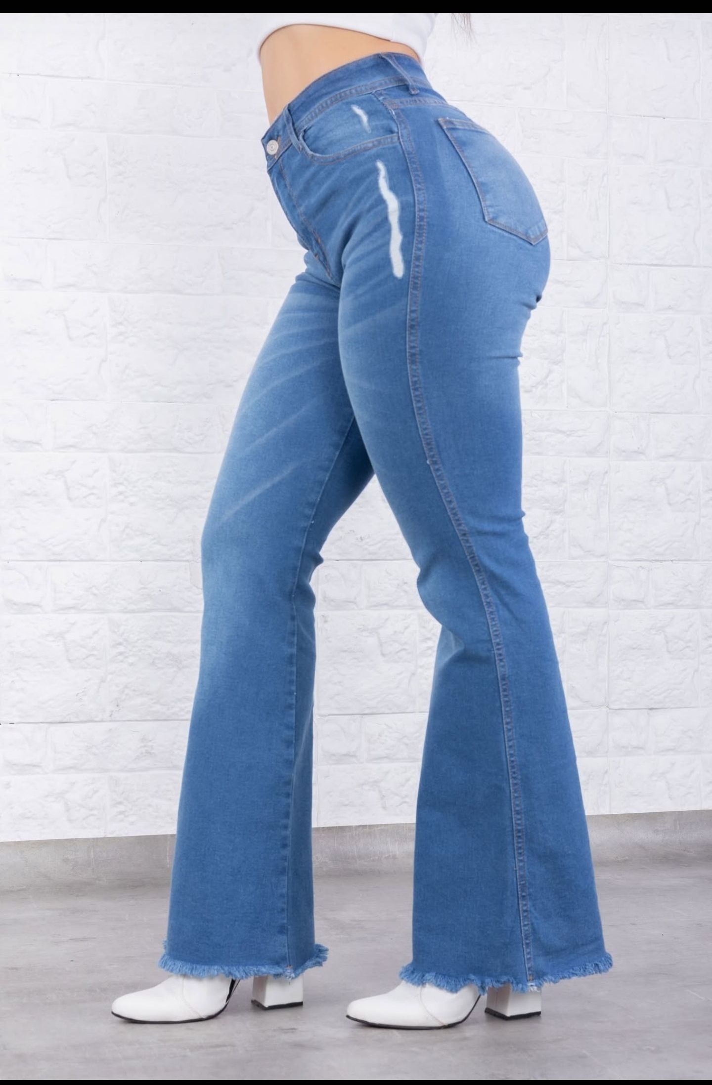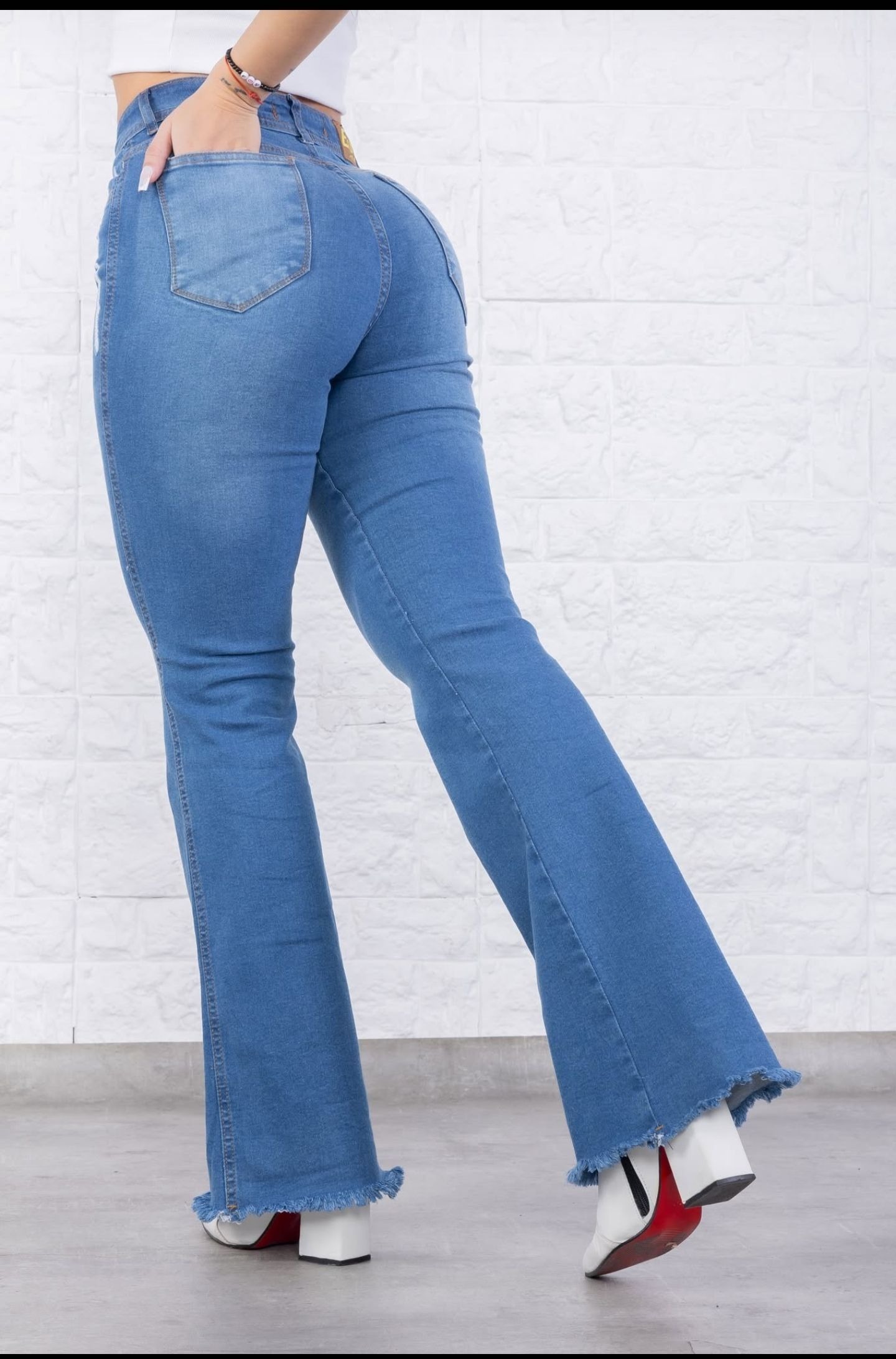 301LOC I JEAN PALAZZO ELASTIZADO CELESTE LOCALIZADO CON ROTURAS Y DESFLECADO EN BOTAMANGA TIRO ALTO TALLES 36 AL 50 EXITO JEANS