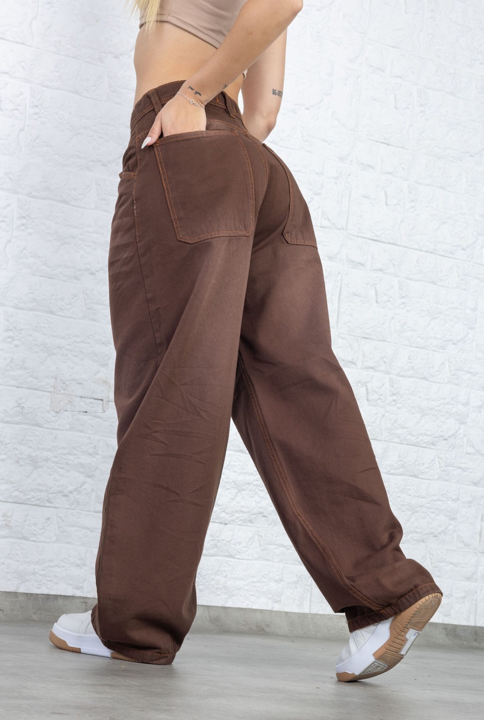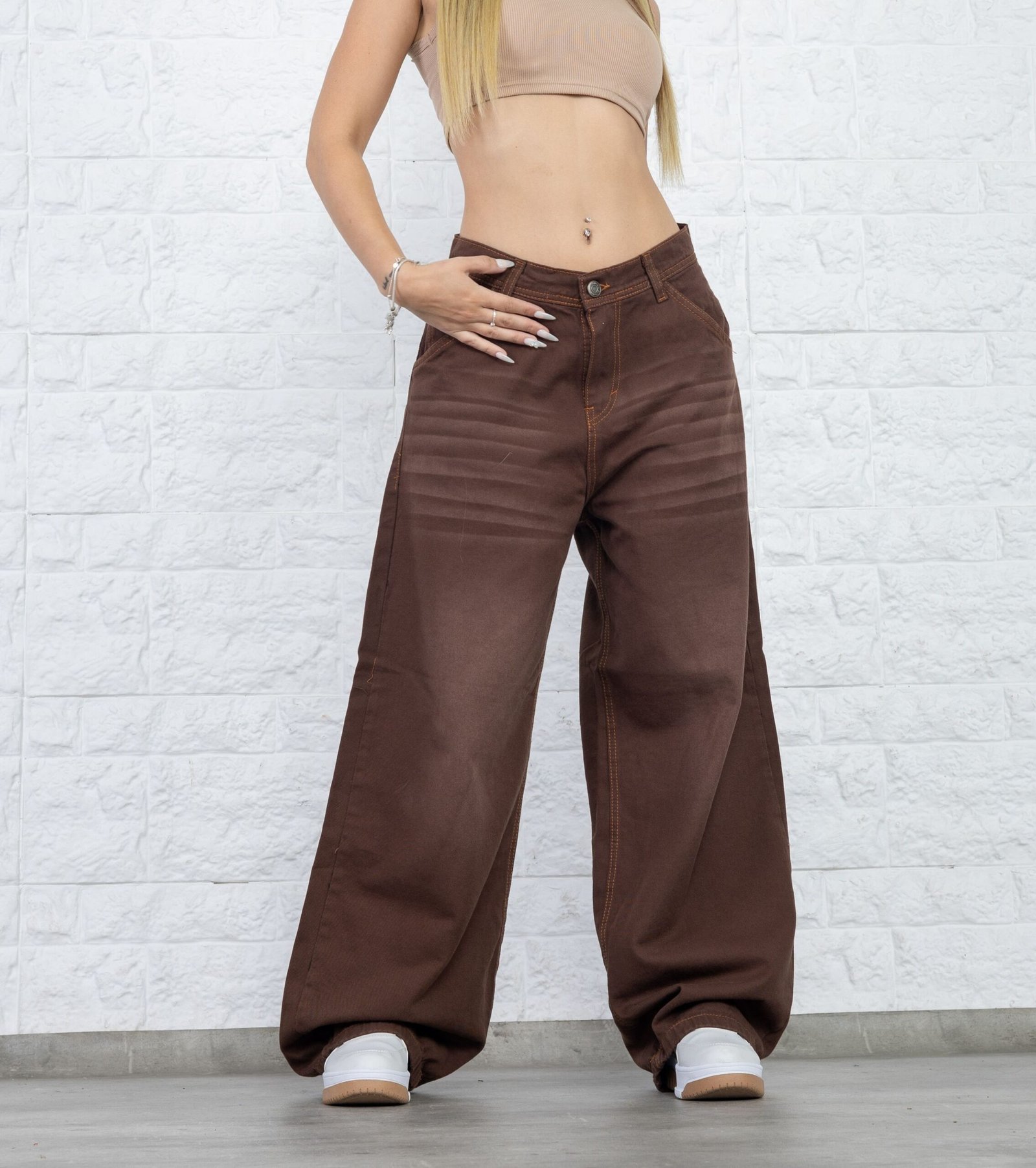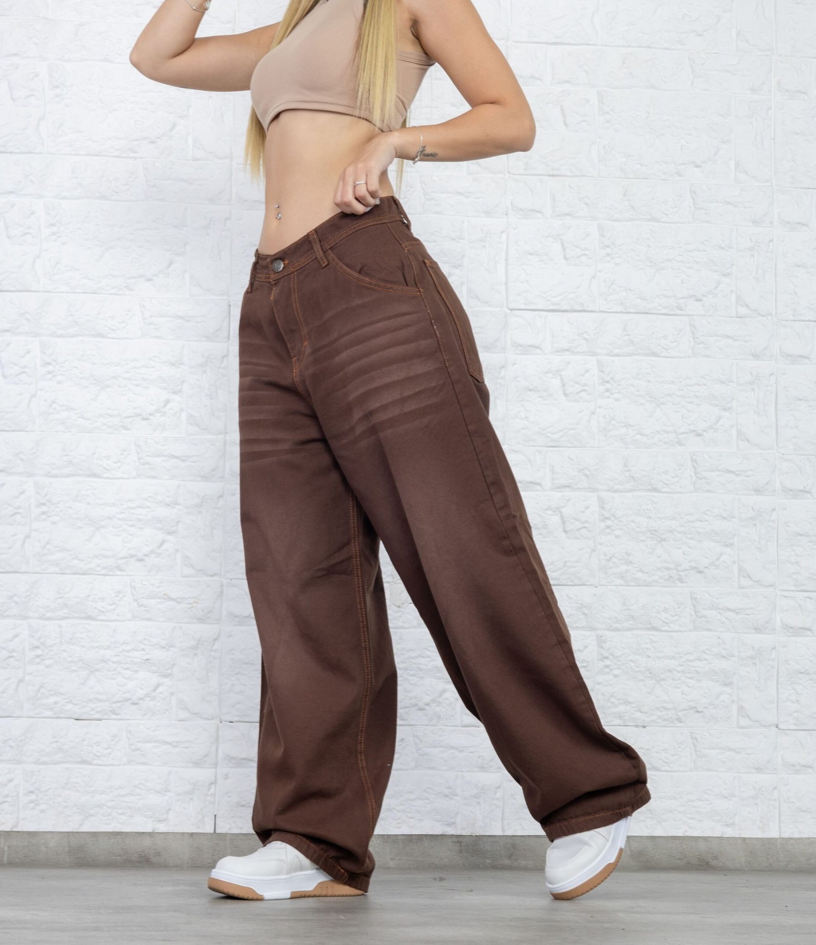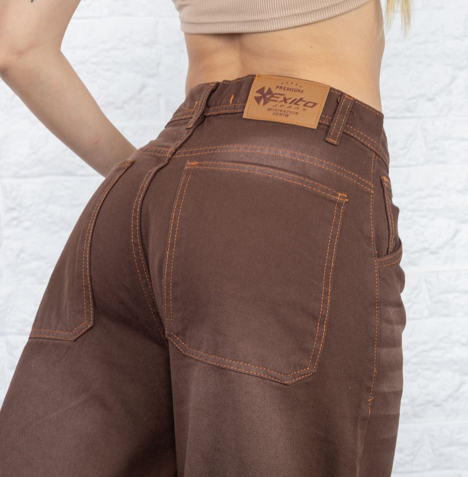 406 | BAGGY OVERSIZE RIGIDO CHOCOLATE CON BIGOTES TIRO MEDIO TALLES 36 AL 46 EXITO JEANS