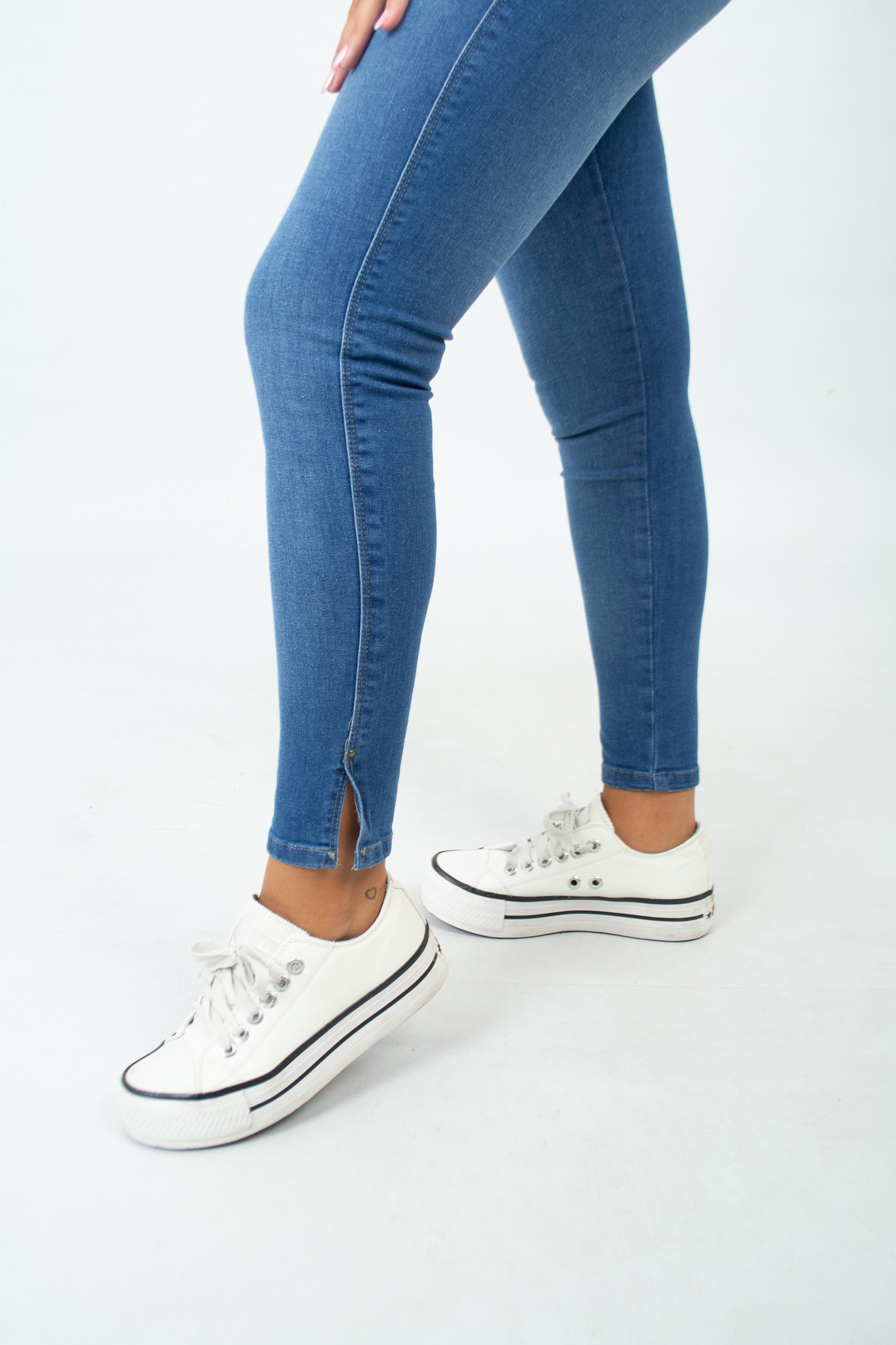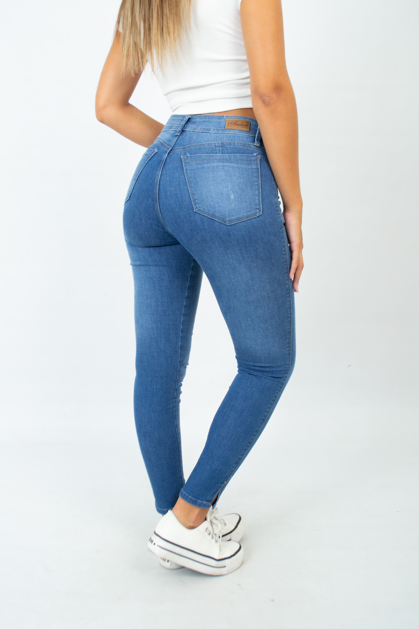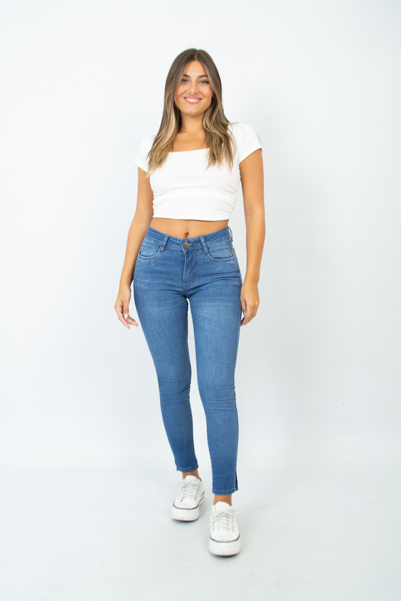566 | G Azul Con Abertura en la Bota y Detalle en el Bolsillo Costura Gris 36-46