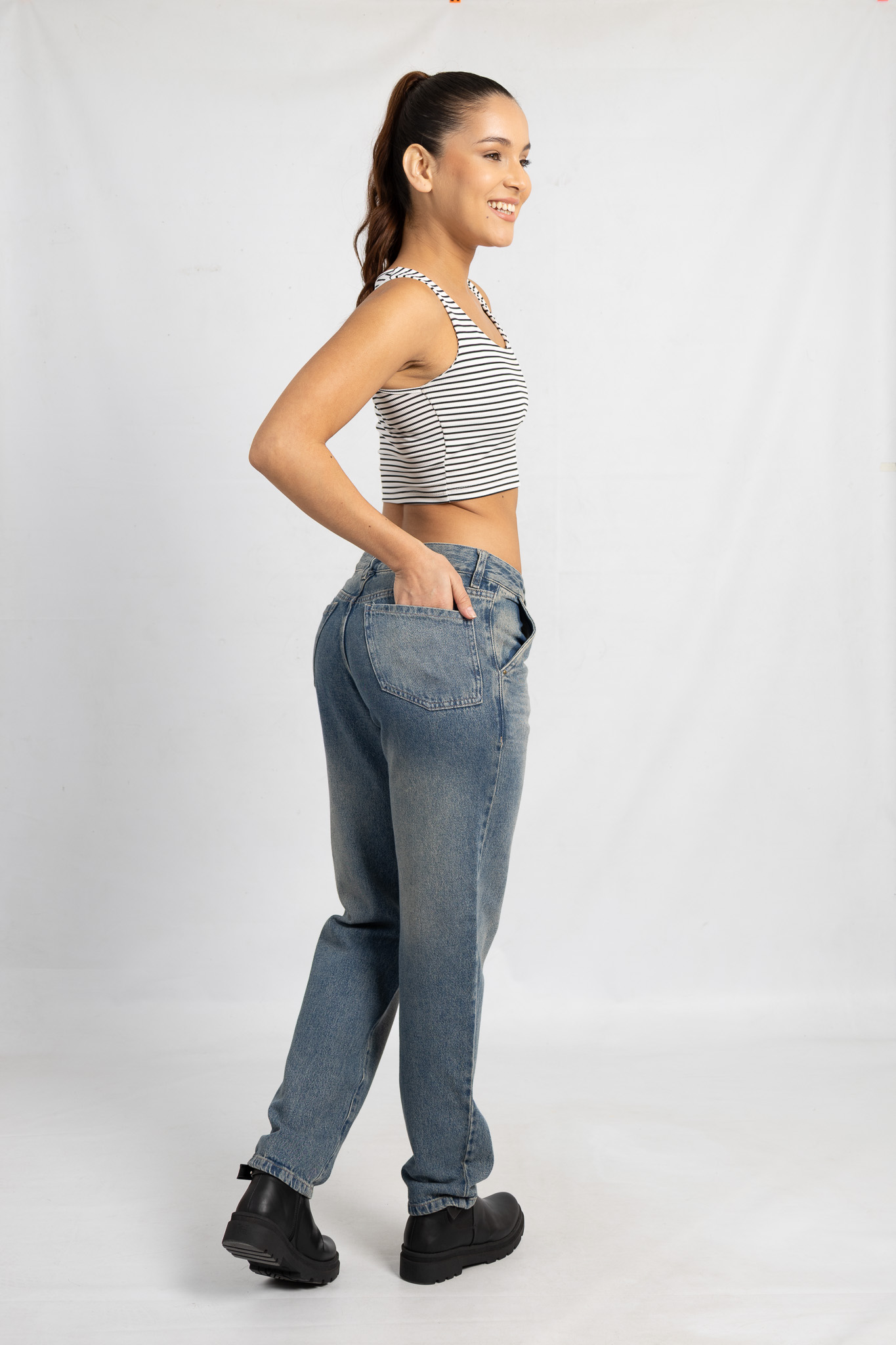 788 | MOM Slouchy Oxido Matizado Tiro Medio Jean Rígido talles 36-46 Versus