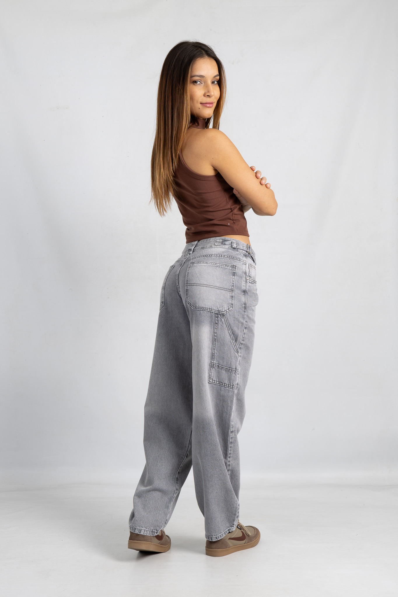 877 – BAGGY CARPINTERO GRIS RIGIDO TIRO BAJO TALLES 34 AL 44 ANADAR JEANS