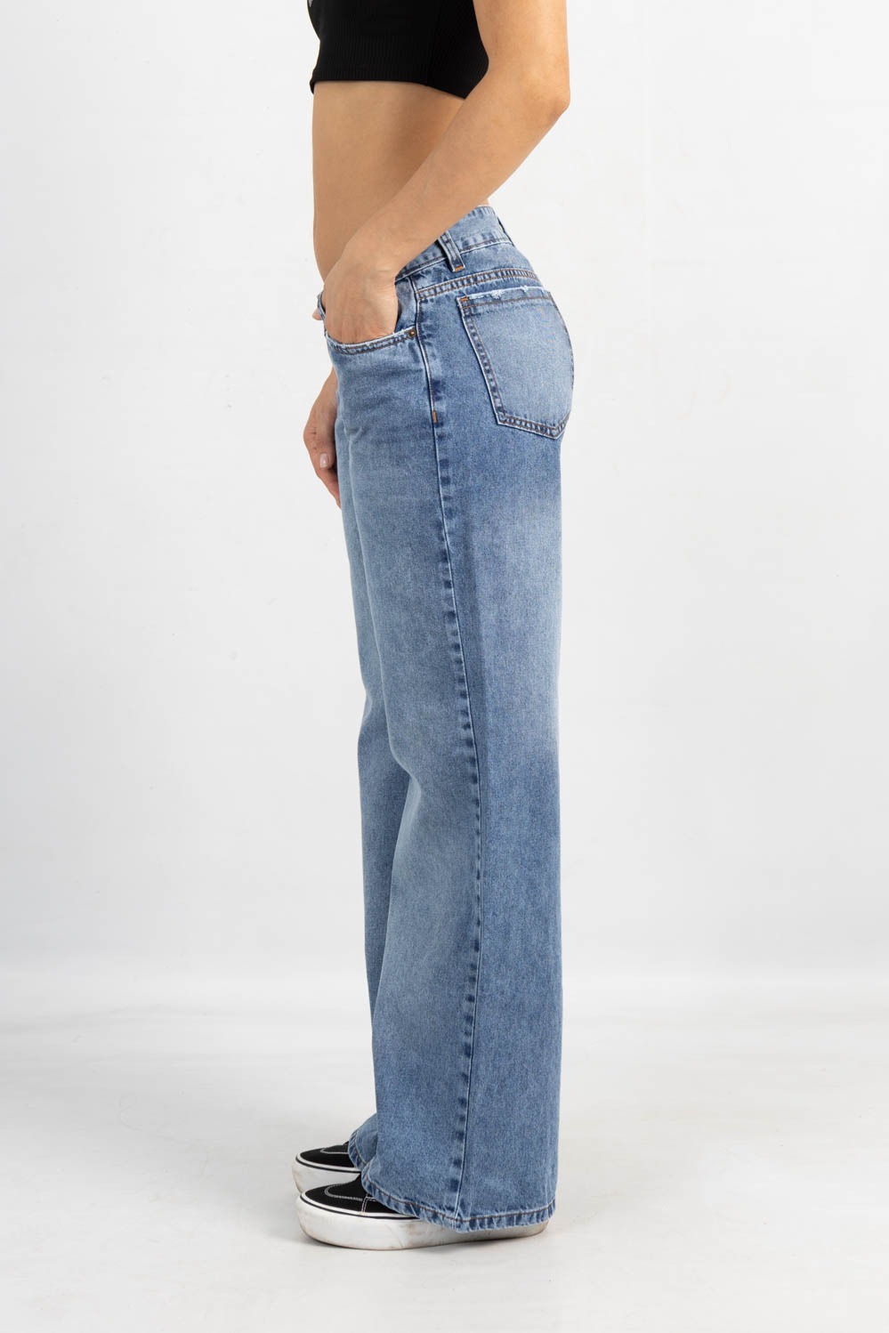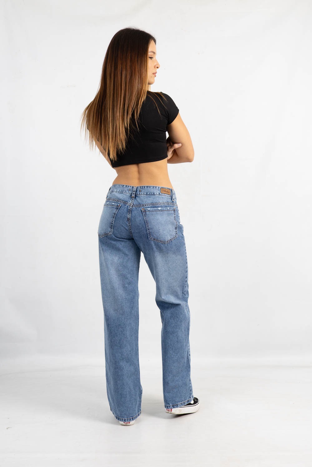 882-WIDE LEG NEVADO PULIDO OSCURO HILO NARANJA TIRO BAJO TALLES 36 AL 44 ANDAR JEANS