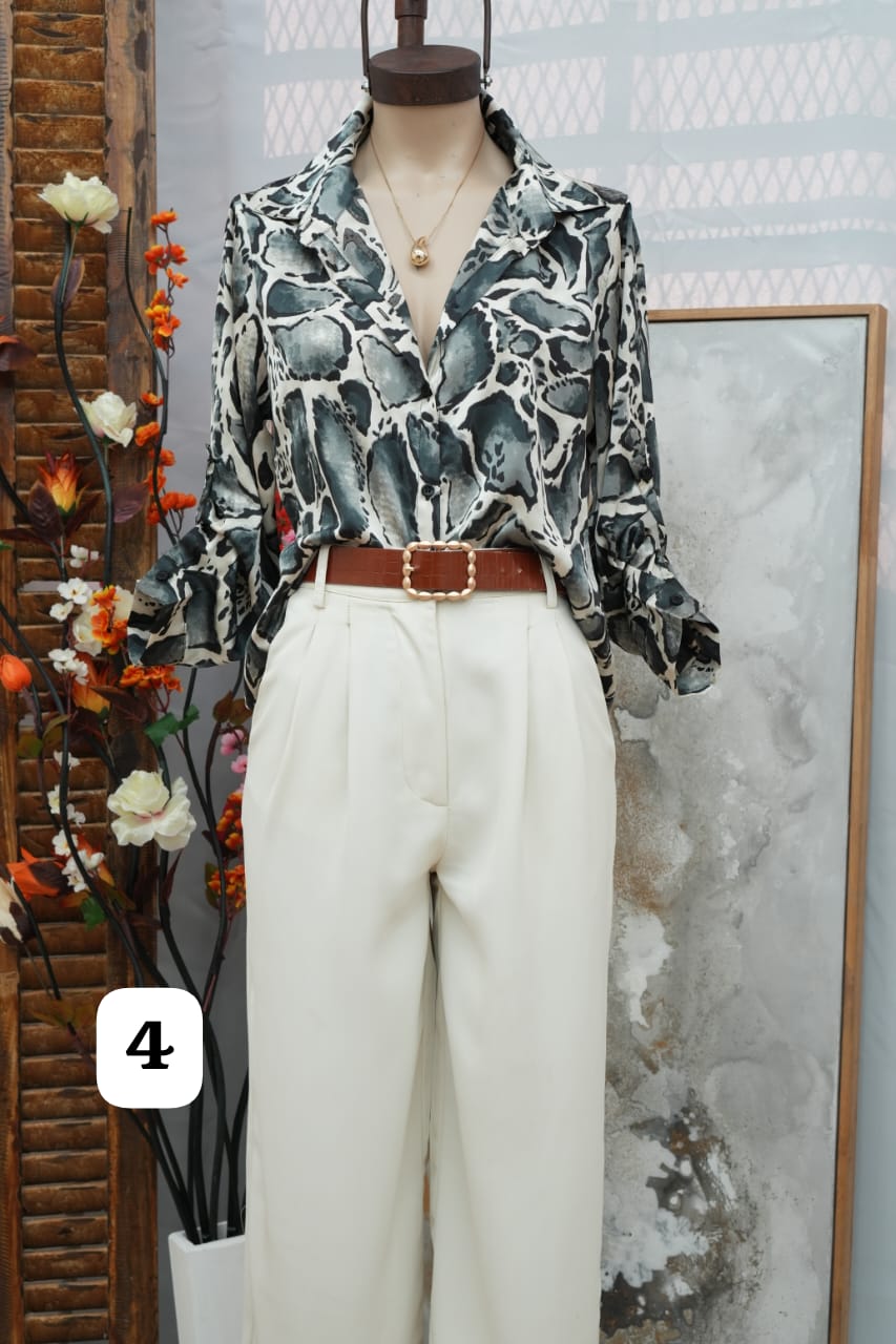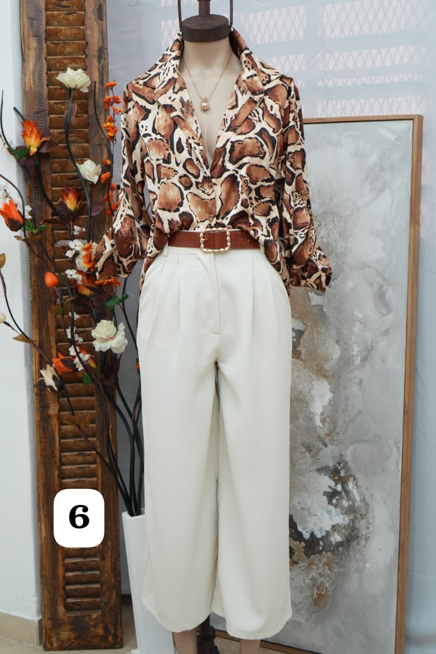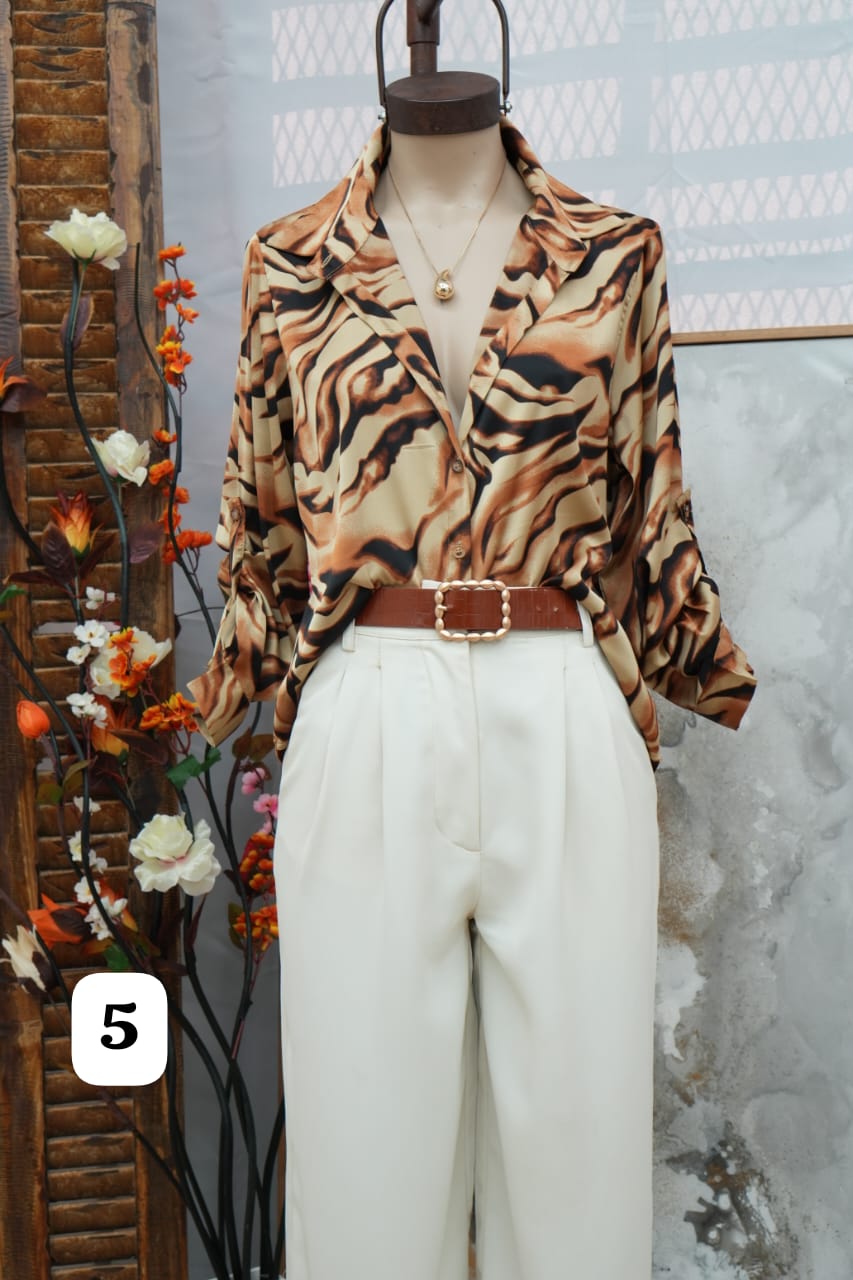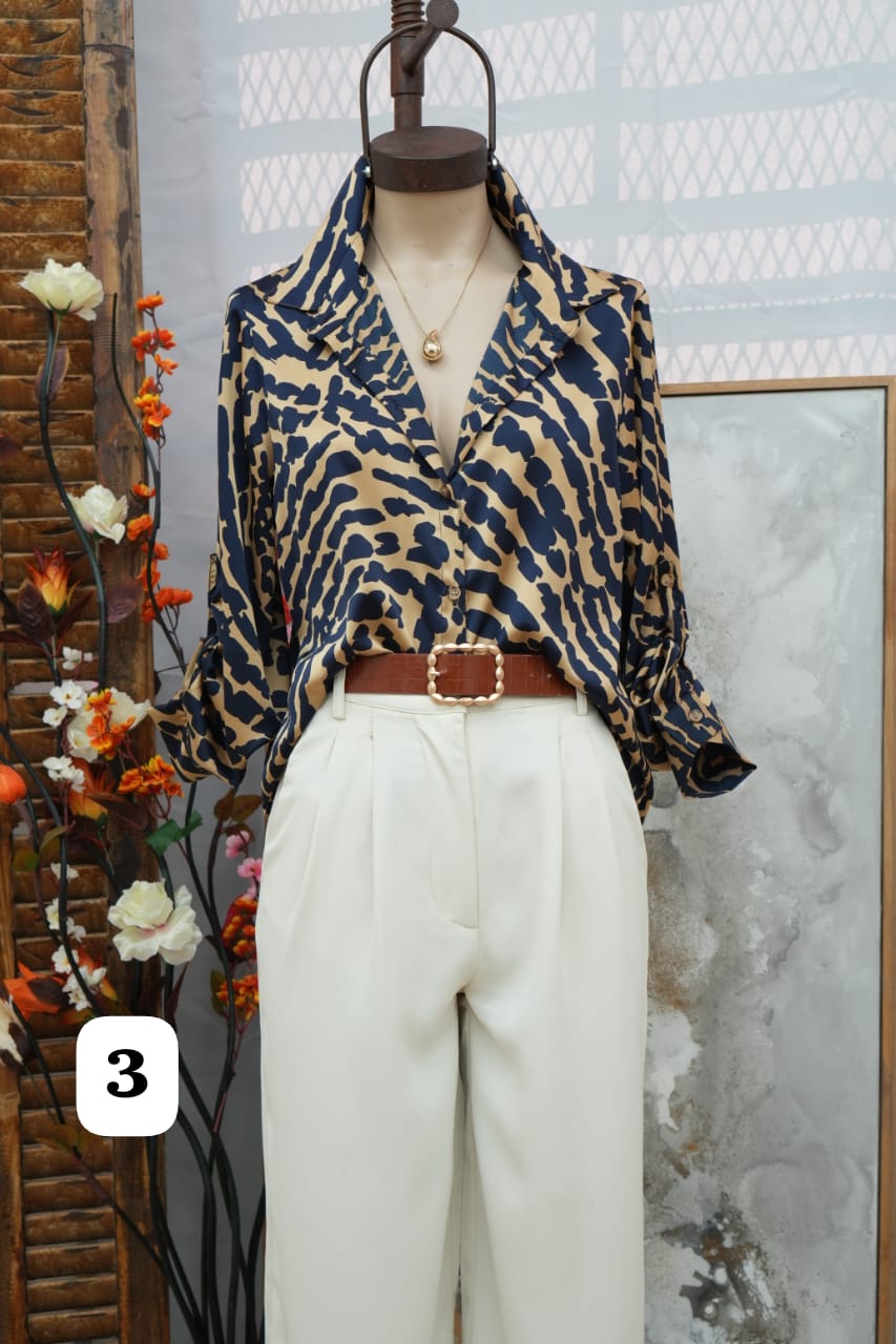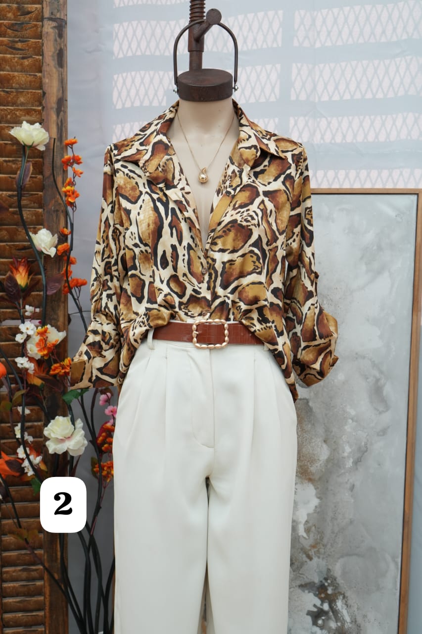 1005 CAMISA CLASICA DE SATEN ESTAMPADO ANIMAL PRINT MANGA 3/4 VARIOS DISEÑOS TALLES M AL XXL