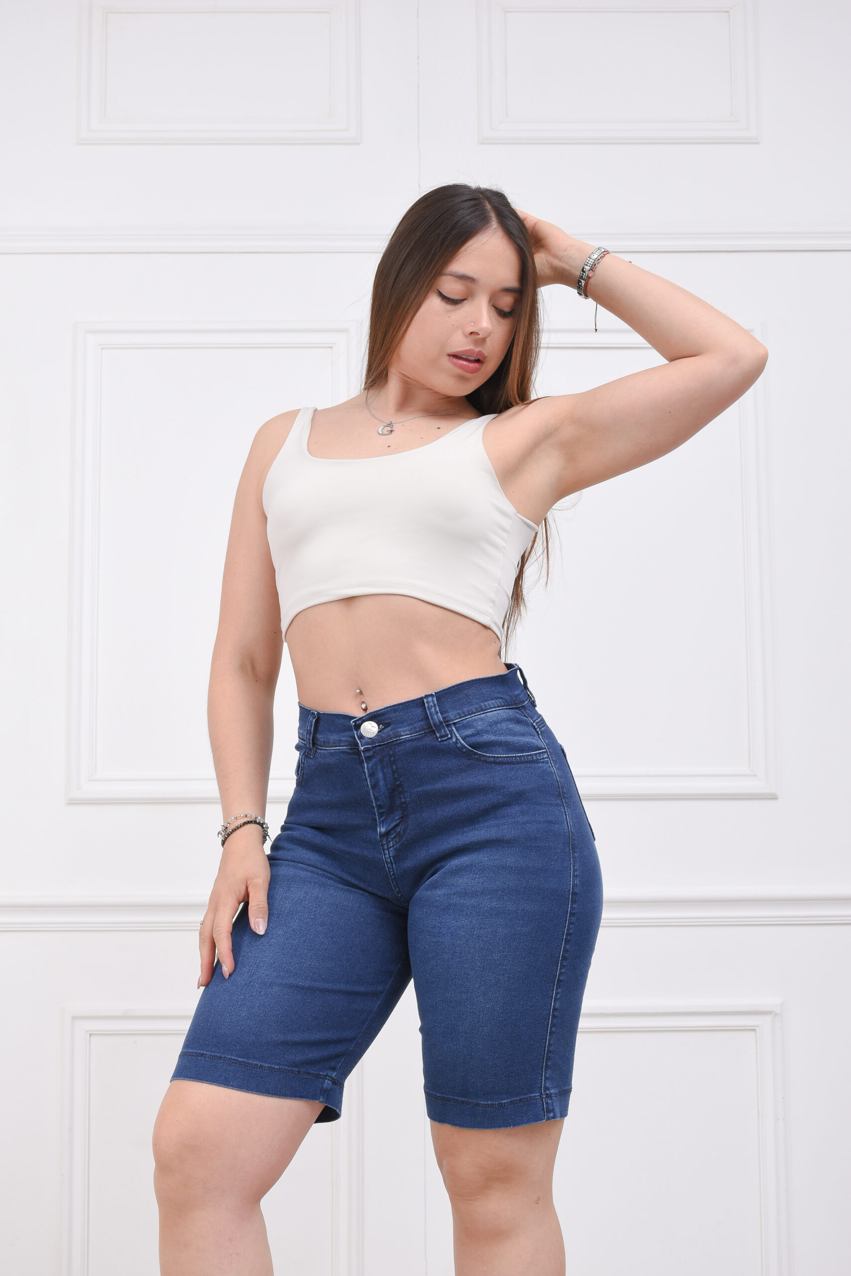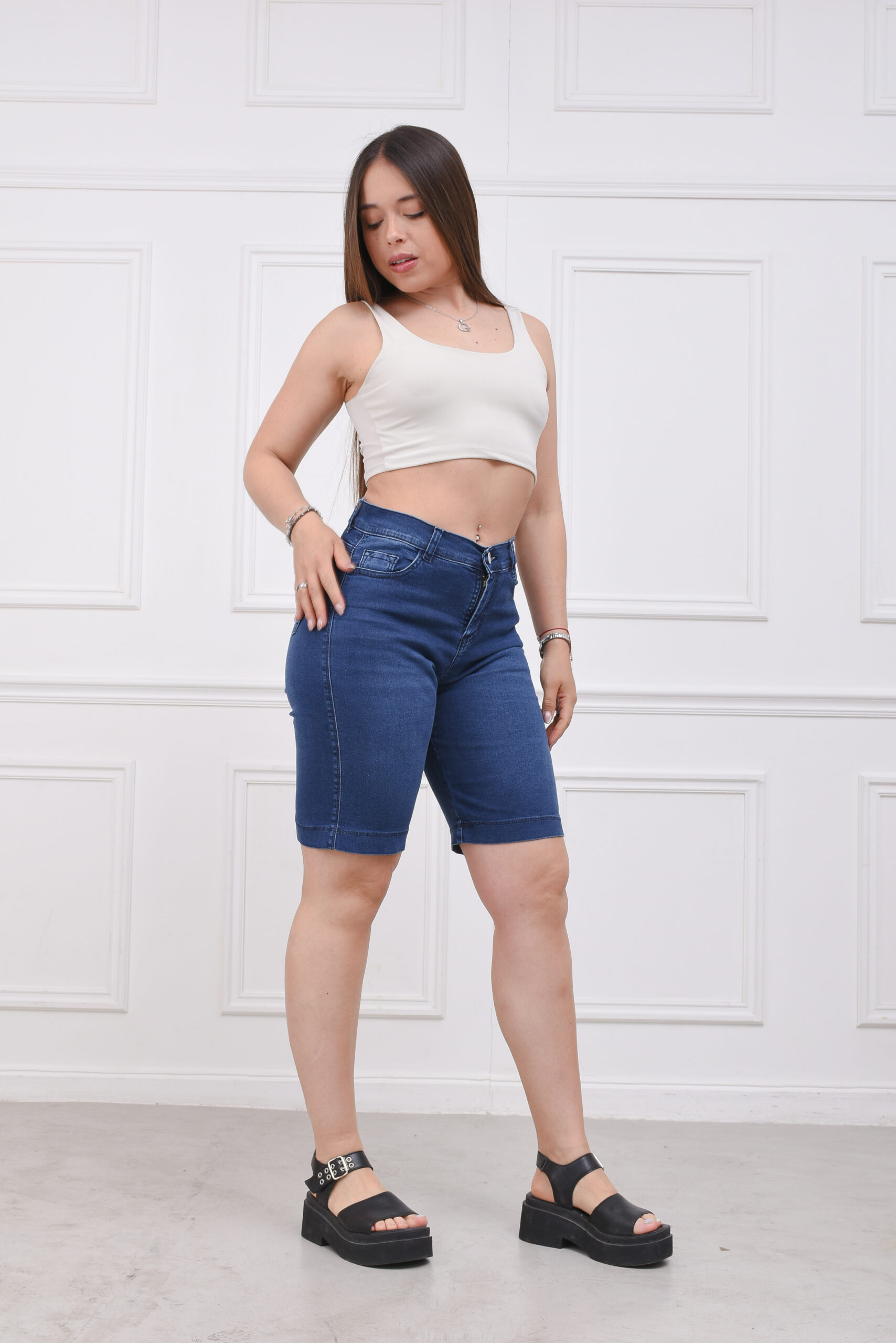 BRISEIDA | BERMUDA AZUL ELASTIZADO CON BIGOTES TIRO ALTO TALLES DEL 38 AL 54 RUMAJU