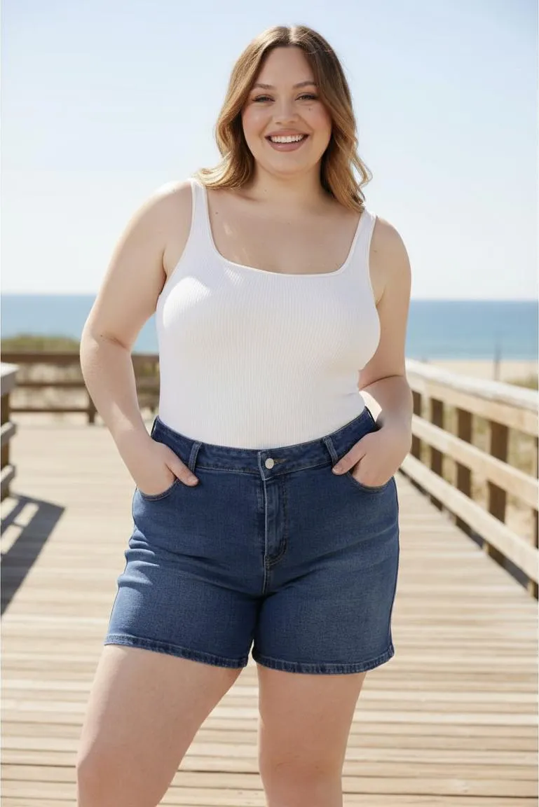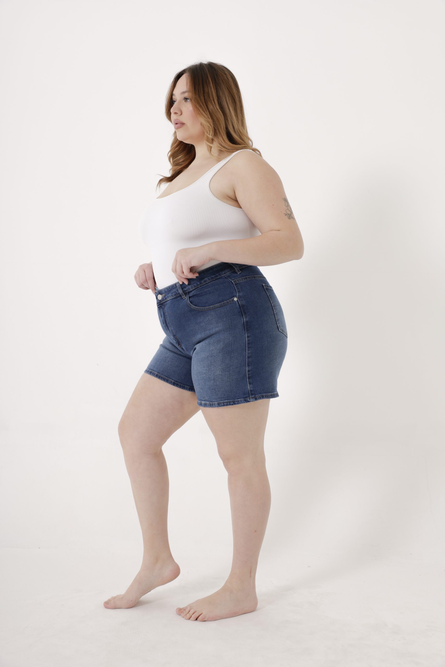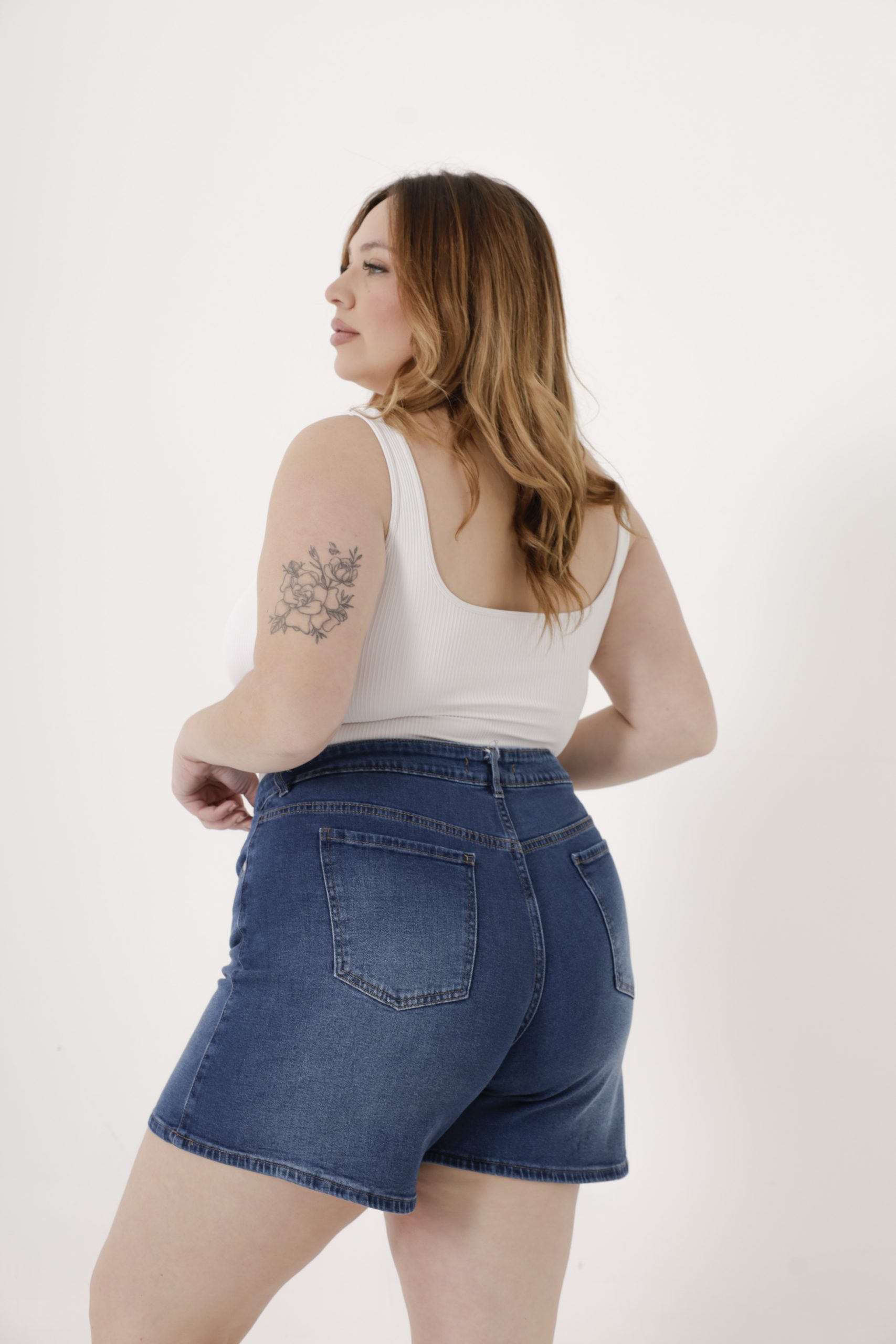 AFRICA | SHORT DE JEAN AZUL LOCALIZADO SEMI ELASTIZADO TIRO ALTO TALLES 44 AL 60 DEKA